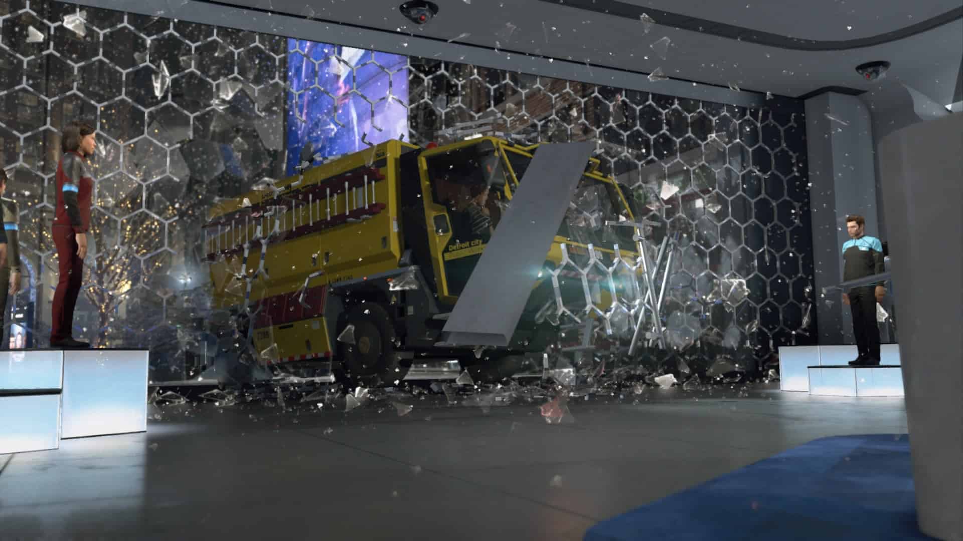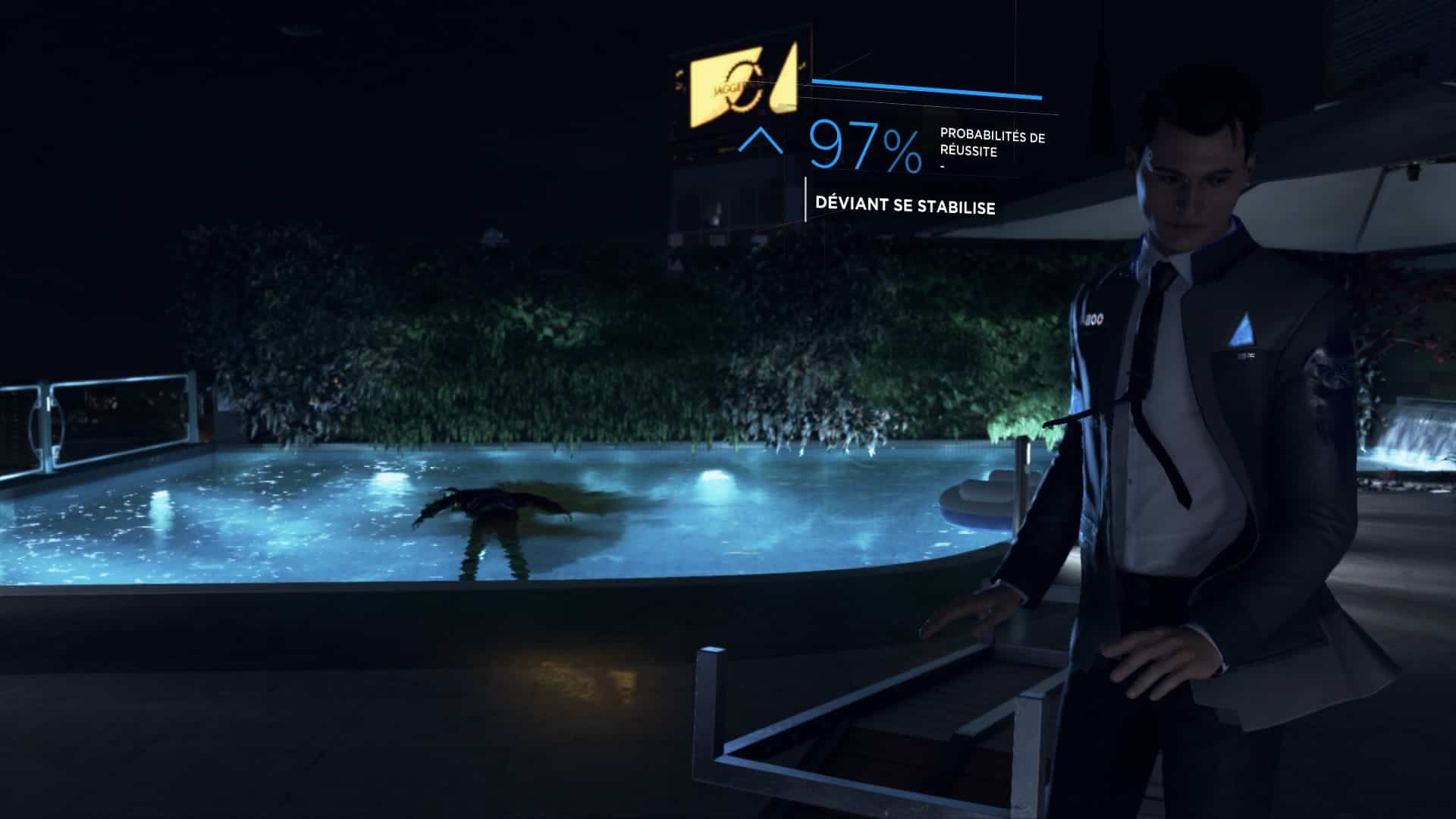 Je tiens donc à insister sur le fait que Detroit : Become Human – comme tous les autres titres du studio français – est bien un jeu vidéo et non un film. Il me semble important de poursuivre la lecture de ce test en gardant ce postulat en tête. D’autant que d’un point de vue purement vidéoludique, Detroit est le titre le plus abouti de Quantic Dream. Même le gameplay se paie quelques frivolités. On retrouve bien sûr les QTE si chers au studio pour des actions aussi triviales que ramasser du papier. On a également droit à des séquences plus dynamiques, ainsi qu’à des analyses de situation permettant aux androïdes de choisir la meilleure option à suivre, quitte à se planter sciemment. Mais vous l’aurez compris, on ne joue pas à un jeu Quantic Dream pour ses mécaniques sophistiquées.