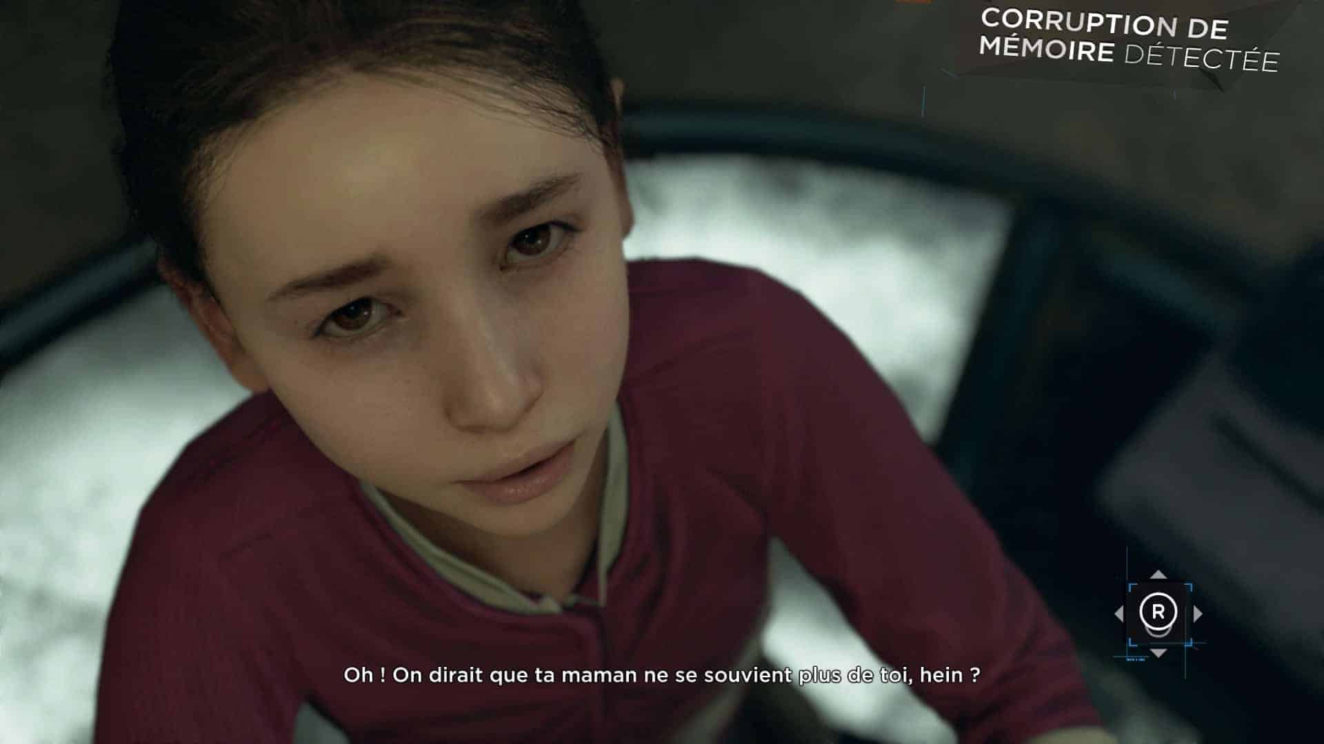 S’il fallait grossièrement résumer, je dirais que Heavy Rain et Beyond : Two Souls (dernier titre de David Cage, 2013) se complètent. Le premier propose un véritable impact sur la narration, avec des conséquences multiples tant au fil de l’histoire qu’à la fin. Mais, pour une série de raisons, le jeu manque de profondeur et on ne s’attache que superficiellement aux personnages. Le second inverse la donne. Beaucoup moins riche narrativement que son aîné, je me souviens de quelques scènes qui m’ont marqué, m’ont fait réfléchir et ont surtout suscité une grosse dose d’empathie vis-à-vis de l’héroïne. En lançant Detroit : Become Human, j’ai rapidement constaté que le dernier-né de Quantic se situait entre ses prédécesseurs.