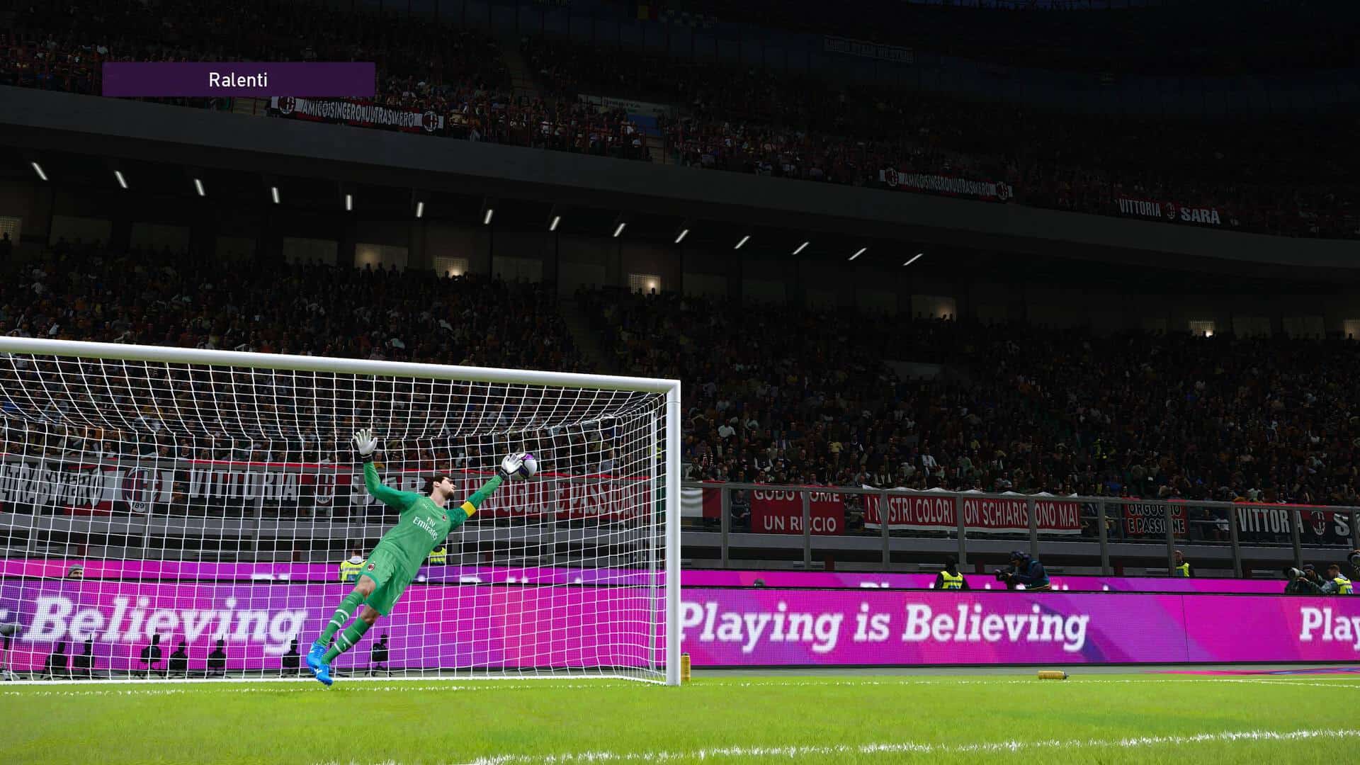 Visuellement, eFootball PES 2020 se rapproche encore un peu plus de la réalité. Déjà au top niveau modélisation des joueurs, on remarque des améliorations ci et la, dans les détails du corps. Le travail sur l’herbe est assez phénoménal, de même que celui réalisé sur le public. On a longtemps reproché ce manque dans les jeux de foot mais on arrive ici clairement à un point fort augmentant l’immersion. Renforcé encore un peu plus par les chants spécifiques des supporters et une modélisation des stades superbe.