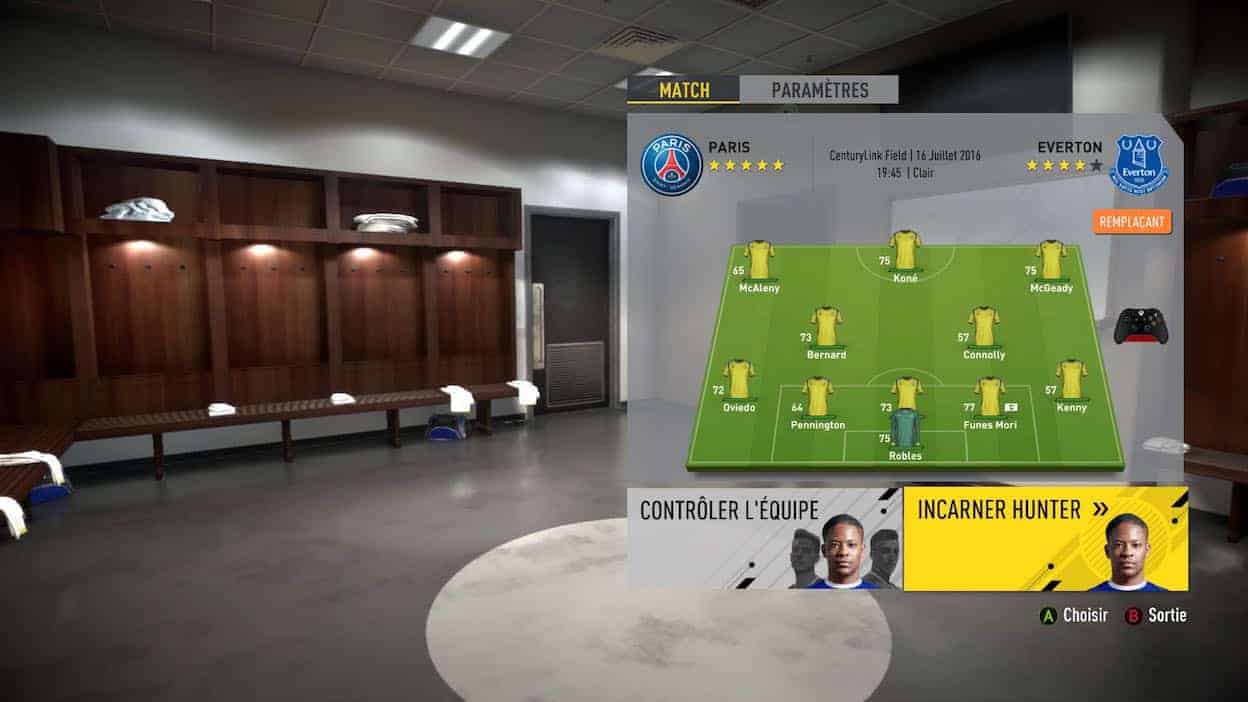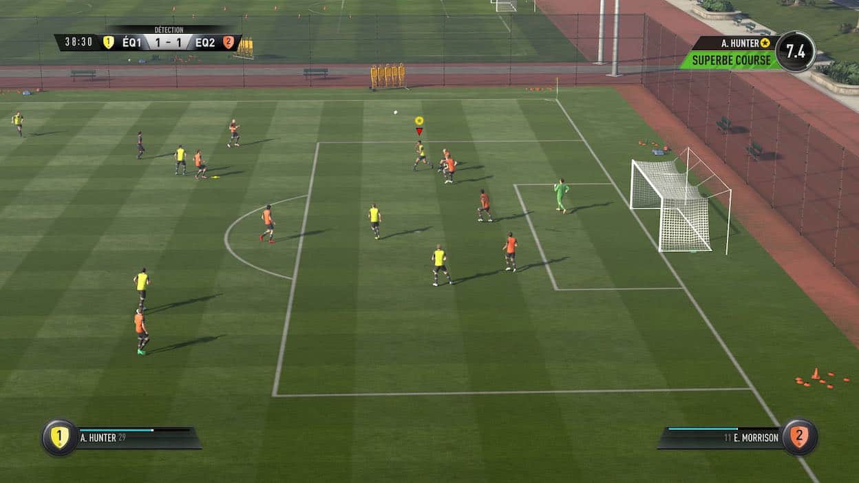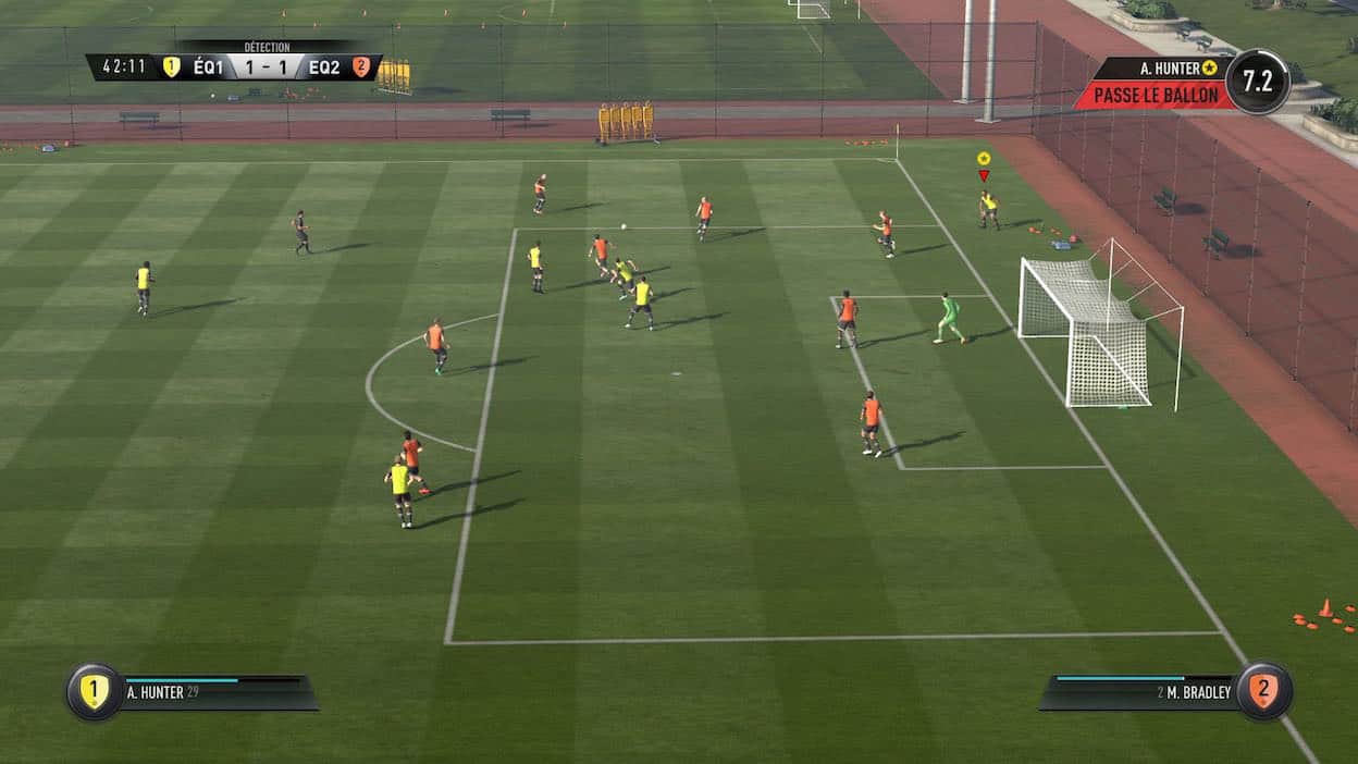 Avant chaque match vous pourrez décider d’incarner toute l’équipe ou simplement Hunter (En précisant que quel que soit votre choix vous ne jouerez que durant la période où Alex est présent sur le terrain). J’ai changé plusieurs fois d’idée car les deux sont problématiques. Soit vous incarnez l’équipe mais alors il est vraiment très difficile de faire grimper la cote d’Alex, sachant que vous devrez gérer 11 joueurs et non 1. Sans compter que du coup il y a constamment une étoile au dessus de la tête d’Alex et je vous avoue que plus d’une fois j’ai couru dans le mauvais sens à cause de cela, pensant que je le contrôlais.