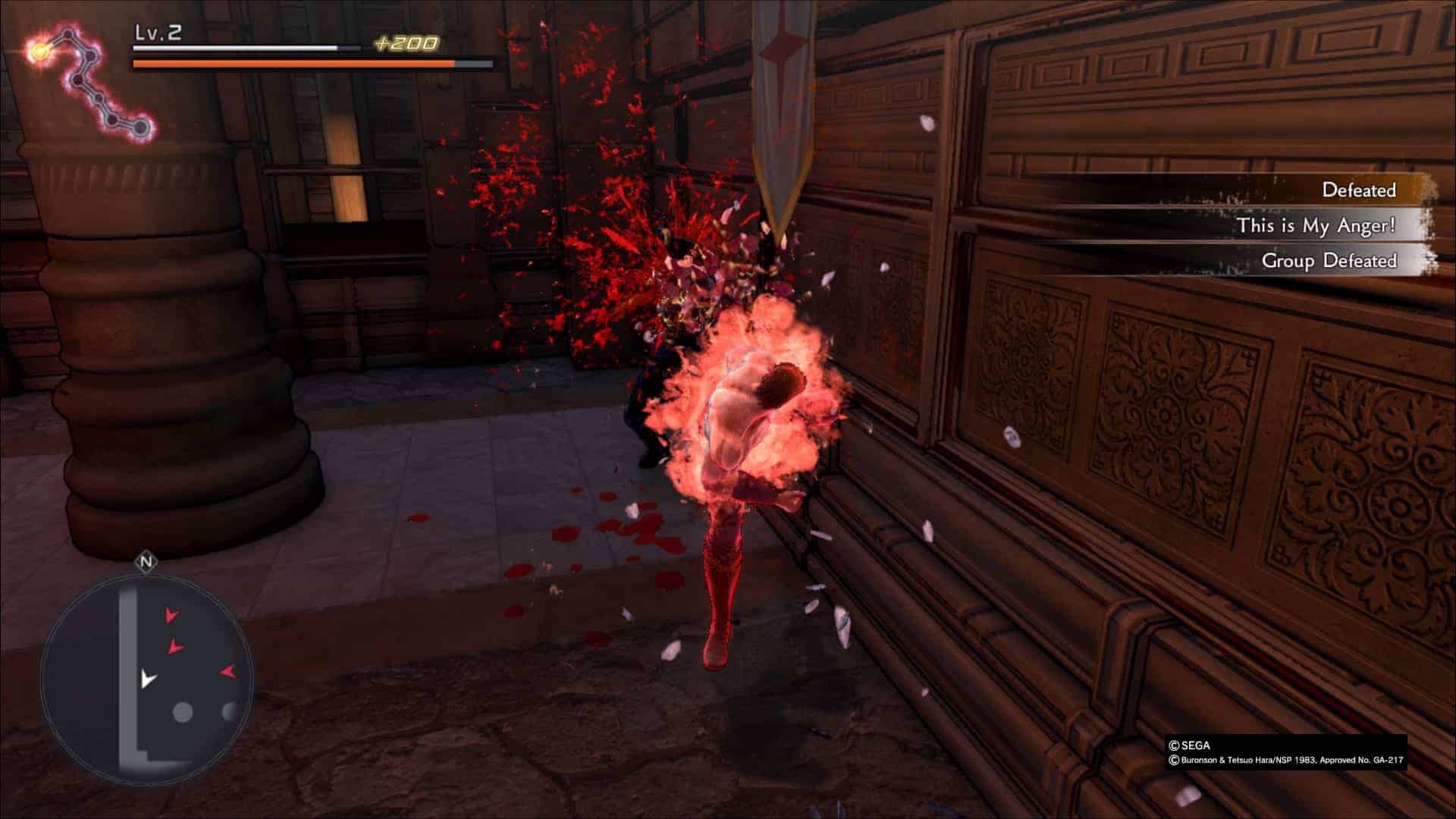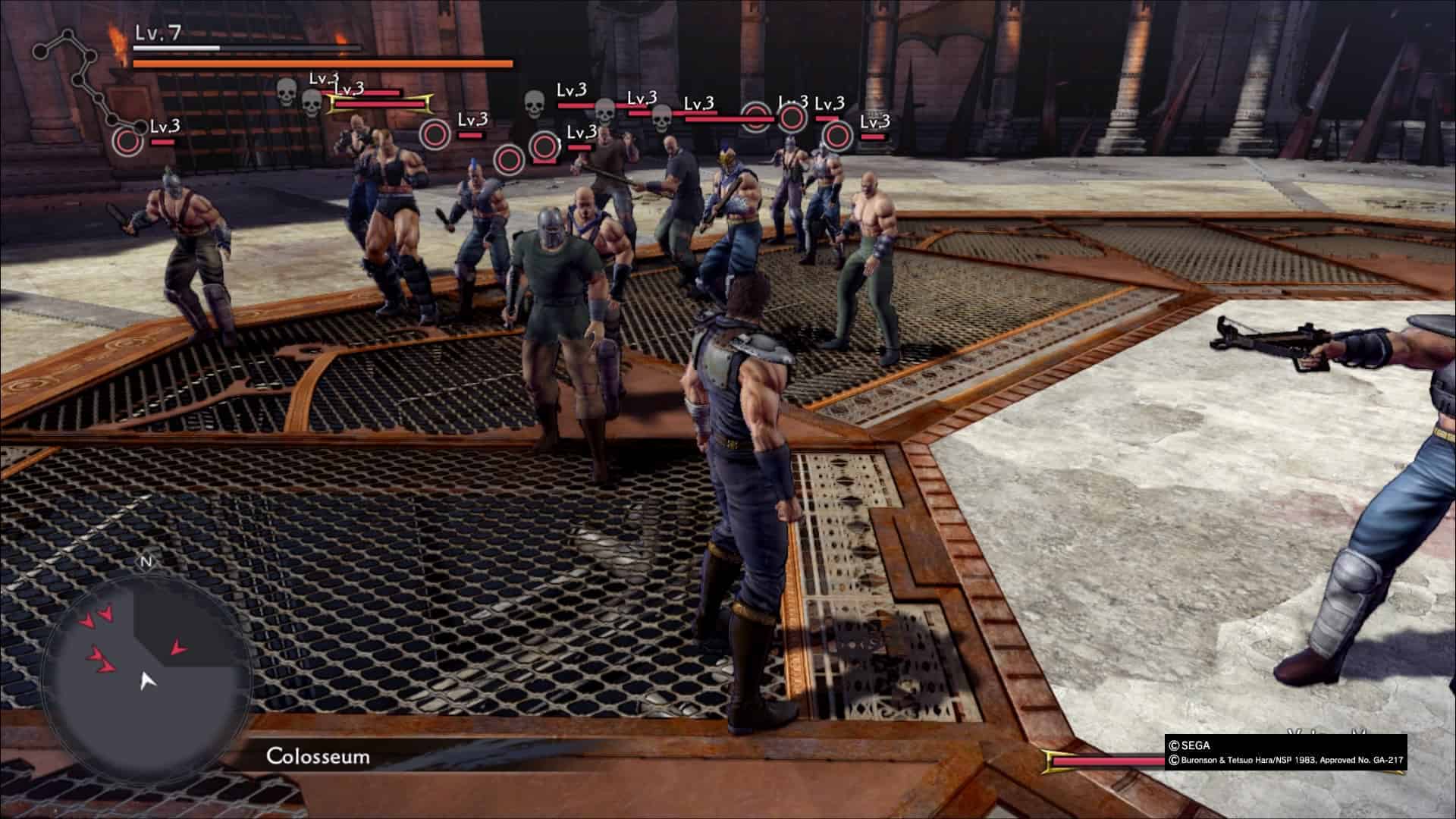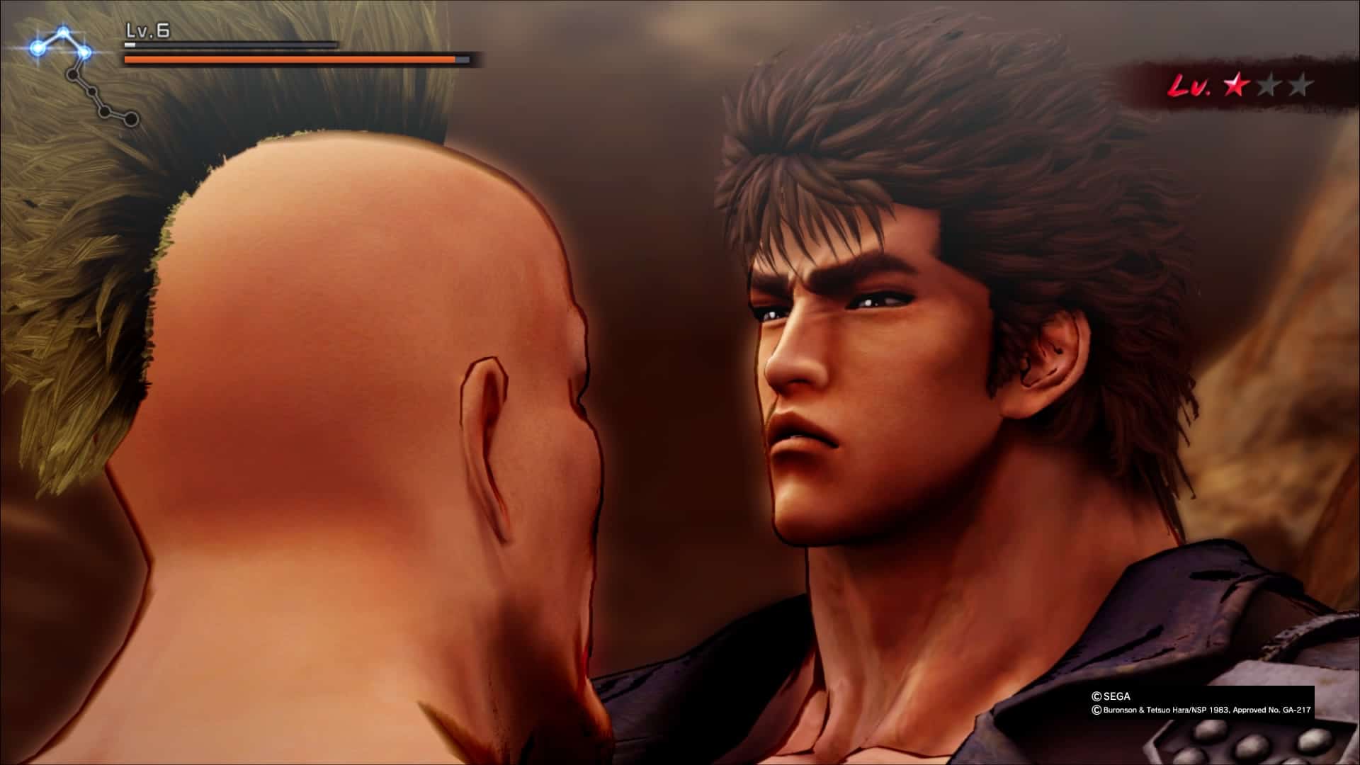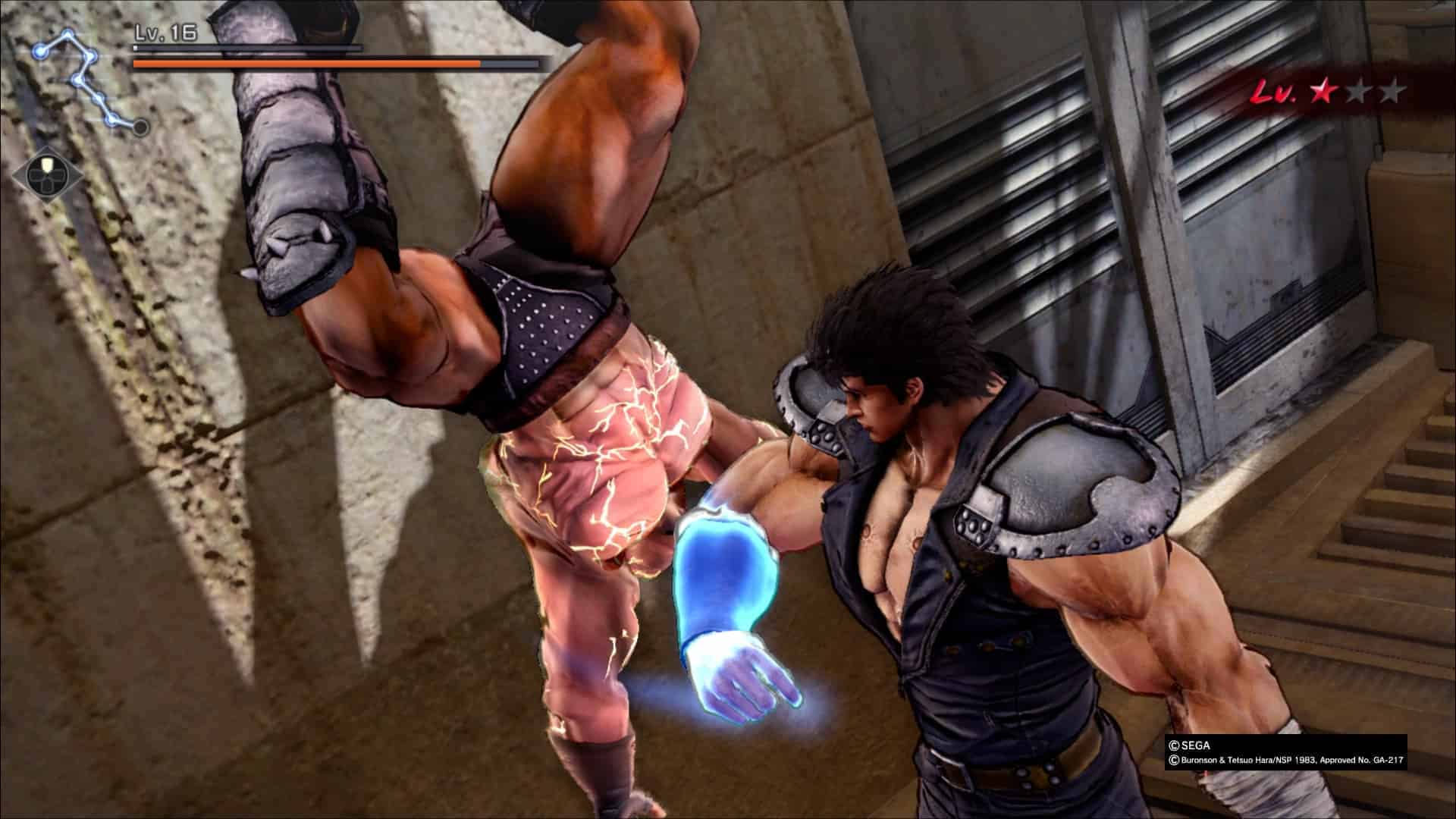 Dès les premières secondes, le constat est sans appel. Fist of the North Star est un skin de Yakuza. L’interface, la carte, le game design, les mini-jeux, l’ambiance (même le doublage du héros !) viennent de la série de Toshihiro Nagoshi. On comprend ainsi que le jeu s’adresse à un public de niche, amateur du manga. Ce qui nous permet d’aborder les combats emblématiques de Hokuto no Ken. Les animations et bottes spéciales s’éloignent des affrontements plus lourds et massifs de Yakuza. Plus fluides, ils en gardent toutefois la brutalité. Et le gameplay ! On martèle donc la touche carré en parsemant des coups de triangle pour les coups plus puissants. La seule vraie nouveauté, c’est la touche rond qui sert à hébéter ses ennemis pour leur asséner un finish move qui se solde généralement par une implosion. Le tout au doux son de : “Tu es mort, mais tu ne le sais pas encore” précédé d’une volée de “tatatatatatatatatatata !”.