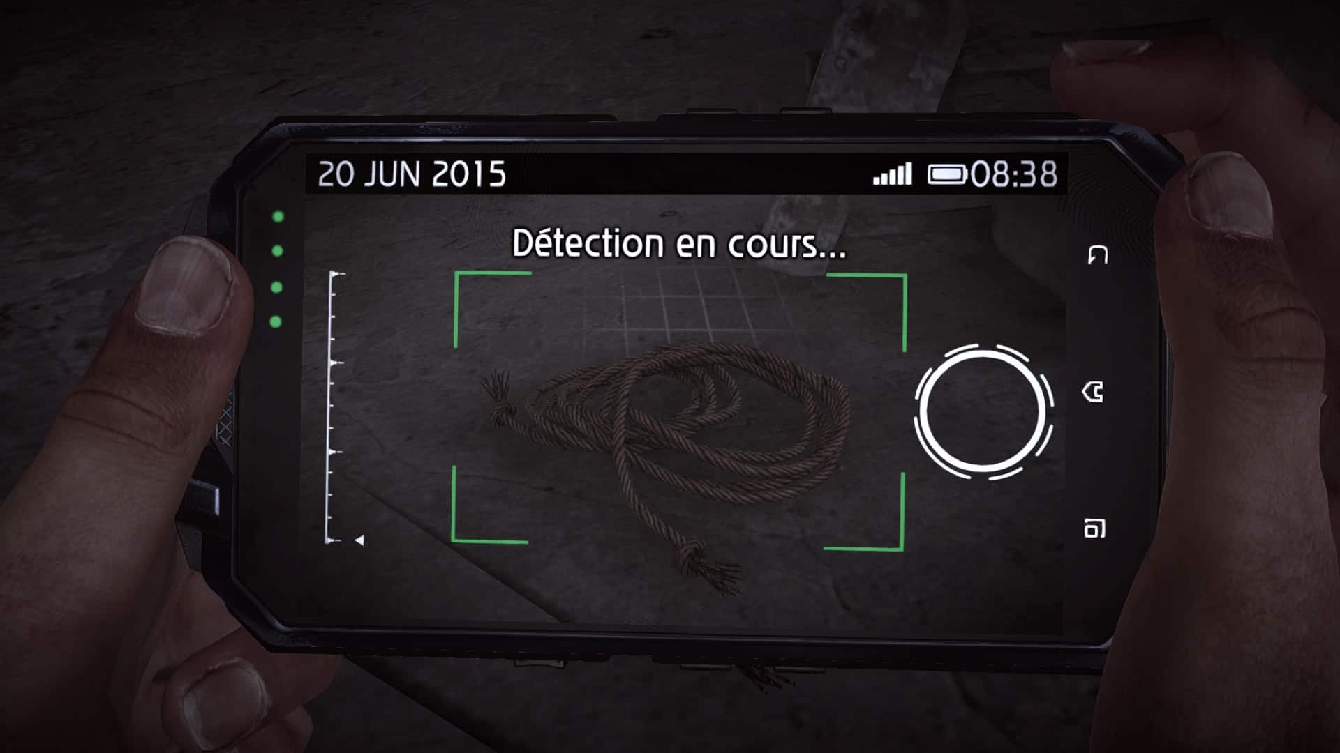 Pour revenir au gameplay à proprement parler, vous évoluez dans une sorte d’asile psychiatrique et vous devez dénouer le fil de l’histoire en scannant des objets, lisant des documents et en déduisant les tenants et aboutissants du scénario. Certaines photos vous plongent dans des souvenirs qui servent ce même objectif. Enfin, vous avez régulièrement accès à une sorte de “bureau imaginaire” dans lequel vous faites le lien entre toutes vos découvertes pour trouver toutes les réponses à vos questions. Et elles sont nombreuses !