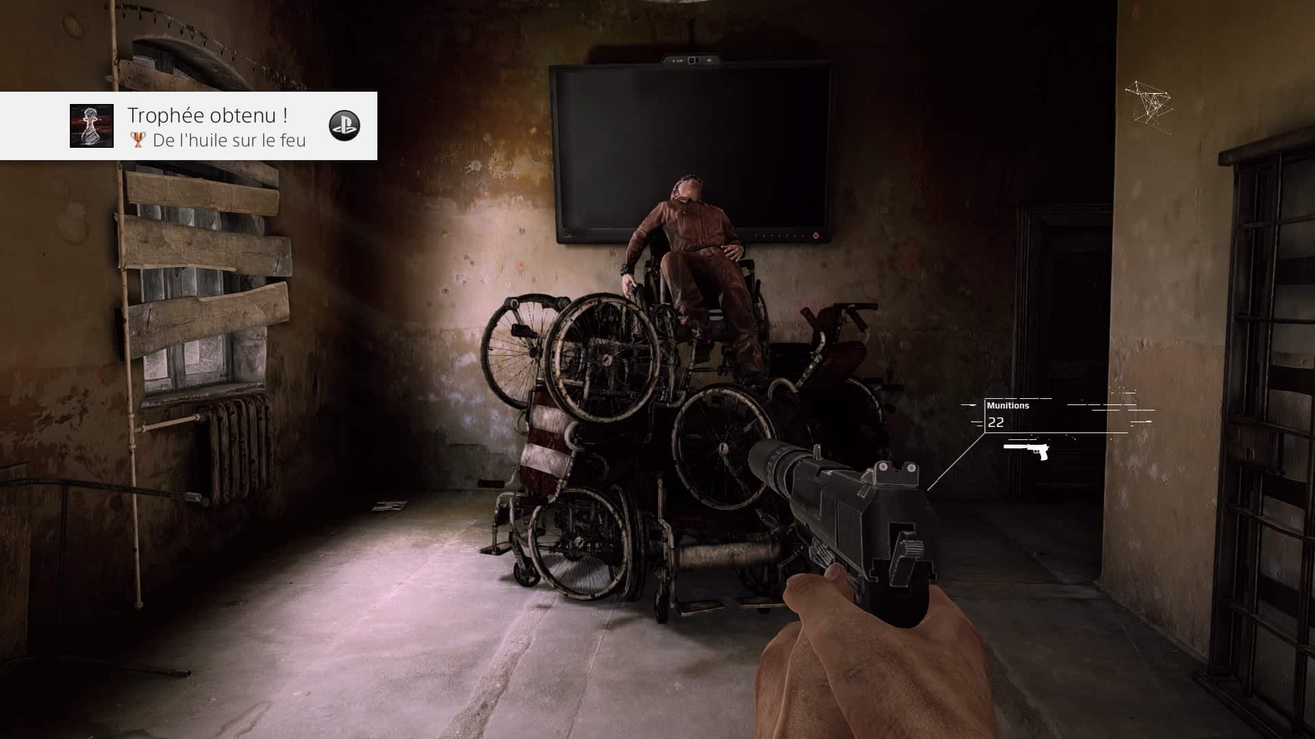 En bouclant ce test, je me demande si le format du jeu était approprié pour son ambition. D’autres studios, comme Telltale ou Quantic Dream, sont passés maîtres dans l’art de raconter des histoires dans leurs jeux. Certes, d’autres studios plus modestes ont opté pour le FPX (first-person explorer) pour atteindre le même objectif. Aussi Get Even est-il parfaitement légitime dans ce cadre. Mais l’ajout des armes et de “l’infiltration” (très sommaire) posent question, en particulier quand on s’attarde sur le smartphone qui aurait pu offrir tant de nouvelles perspectives de gameplay. En outre, les autres FPX datent désormais de quelques années, déjà. J’ai l’impression que la tendance est passée mais que The Farm 51 est resté bloqué en 2015. Un constat renforcé par la plastique de Get Even. Reste que le jeu raconte une histoire assez bien ficelée (faut suivre… et lire !) avec une bonne mise en scène. Dommage qu’il ne compte que sur ça !