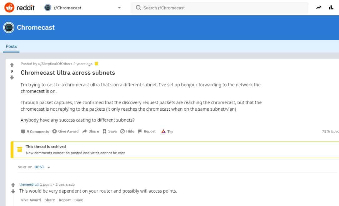 Mon smartphone ne voit plus le Chromecast Ultra branché en Ethernet
