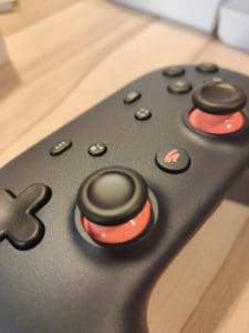 La manette de jeu est agréable et offre une bonne sensation au toucher que ce soit pour les sticks analogiques, les gâchettes ou l’ensemble des touches. De nombreux boutons supplémentaires sont propres à Stadia afin de gérer le système, faire des captures d’écrans, etc. Le moteur de vibration donne les sensations qu’il faut et même si je préfère la manette Xbox One, je suis globalement satisfait de la manette.