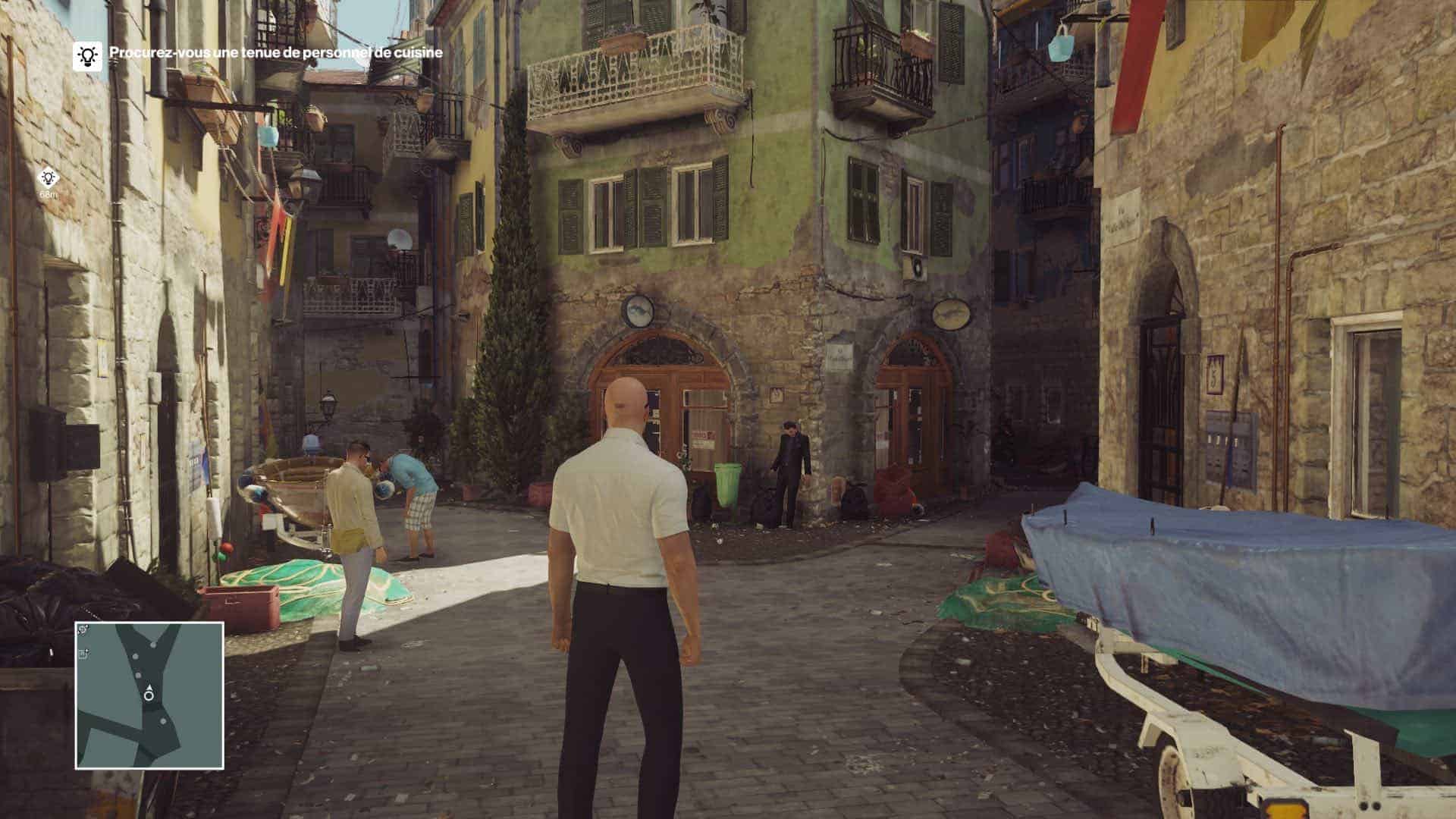 Après une courte vidéo vous expliquant qu’un homme fait des recherches sur un virus mortel, on vous demande bien évidemment de le zigouiller ! Pour être sur que ses recherches ne soient pas reprises on vous sera gré de faire passer, au passage, la chef des recherches de vie à trépas. Quelle chance pour nous, au delà d’être un savant fou, la cible à décider de mener ses recherches dans une superbe ville sur la côte amalfitaine : Sapienza !