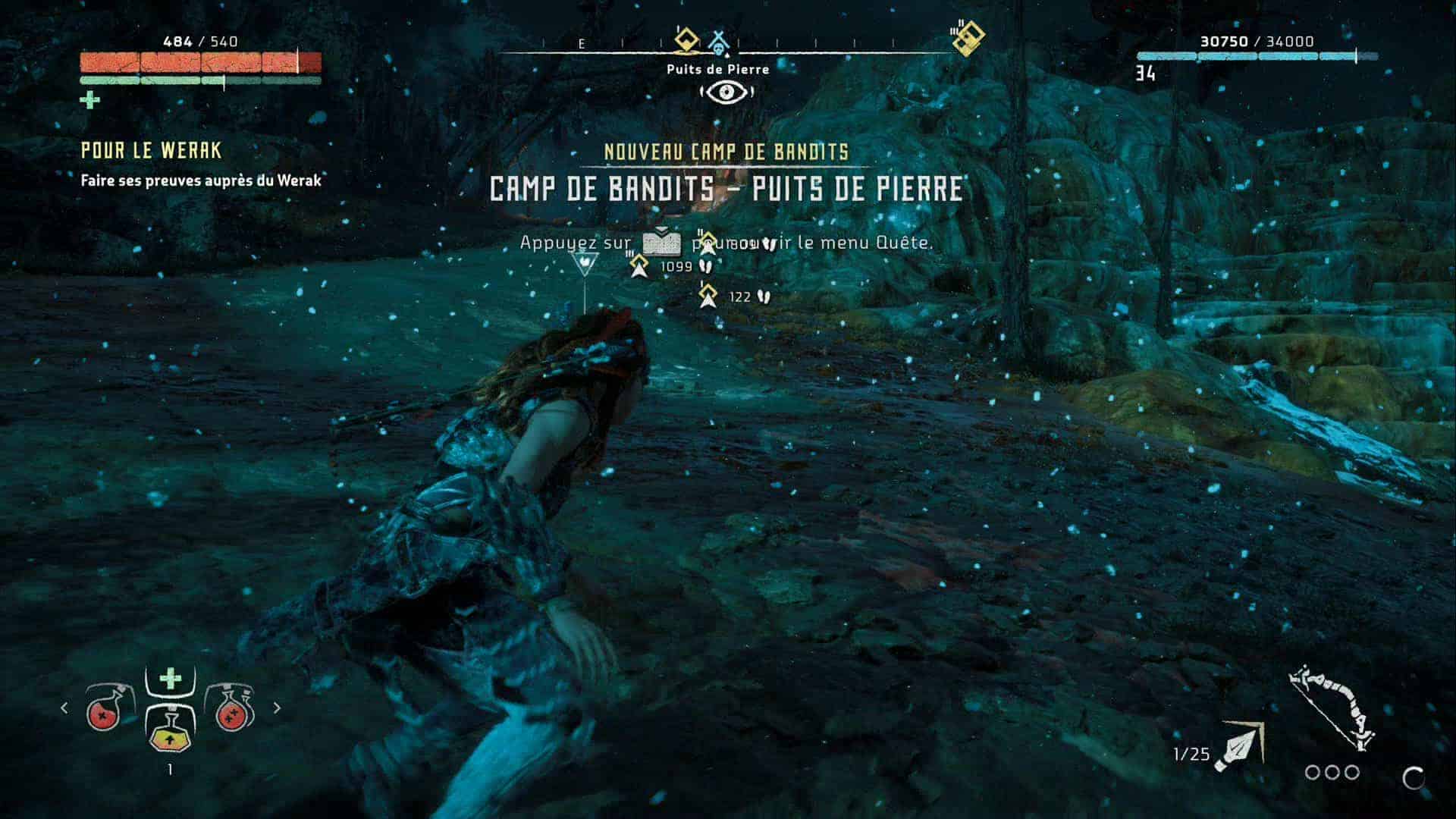 Mais Horizon Zero Dawn, c’est bien plus que sa quête principale déjà bien fournie. C’est un univers ouvert immense, où il vous faudra récolter des matériaux pour fabriquer vos armes, remplir des missions secondaires afin de gagner des récompenses et autres fragments de métal mais aussi faire évoluer votre personnage au fur et à mesure que vous gagnerez des points de compétence. Bien que n’étant pas fan de ce dernier aspect, il est ici si bien maîtrisé et suffisamment léger qu’on le fait avec plaisir sans impacter la fluidité de la trame. Enfin, le bestiaire est immense et nous apporte quelque chose de réellement nouveau. Les humains étant parfois vos cibles aussi, ceux-ci sont pourtant loin d’être intelligents.