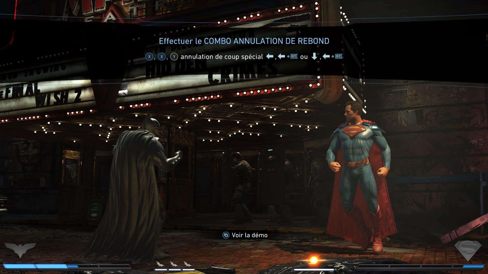 Nul besoin de vous dire que le mode histoire est juste génial. Certes comme je vous l’ai dit ce n’est pas toujours facile de s’y retrouver mais malgré cela c’est du tout bon. Je soupçonne Warner d’être en accord avec les comics pour faire en sorte que l’histoire ne divulgue pas tout pour vous inciter à acheter la série de comics Injustice mais bon, business is business comme dirait l’autre. Au rayon des choix étranges j’ai pu noter que les menu n’était pas logiques. Rien que pour changer la config du jeu il vous faut aller dans… “options” ? FAUX ! C’est tellement plus sensé de mettre cela dans le menu “Bonus” !?