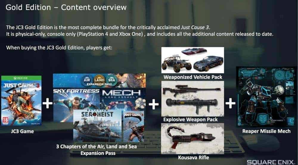 Sorti en Décembre 2015, Just Cause 3 nous avait fait forte impression malgré quelques bugs et temps de chargement pour le moins longs. Just Cause 3 Gold edition est paru il y a plusieurs semaines et on vous détaille son contenu pour vous convaincre de l’acheter si ce n’est déjà fait.