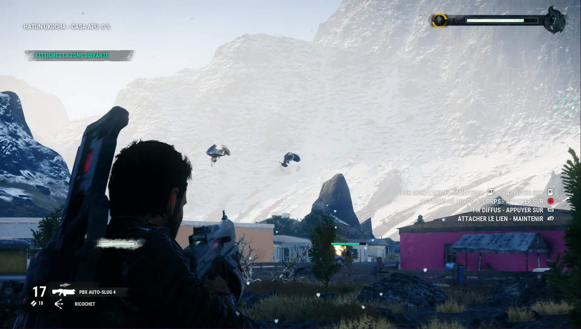 Just Cause n’a jamais été réputé pour son coté visuel. Sans être laid du tout, le 3 nous avait montré les limites techniques du jeu avec des plans d’ensemble relativement beaux et des effets de lumière bien réalisés alors que les détails et personnages (y compris images de synthèse) semblaient parfois dater d’une autre époque. Ce qui est également le cas pour ce Just Cause 4, on pourrait donc parler de Just Cause 3.5 plutôt que de Just Cause 4. J’en veux pour preuve l’image que j’ai montrée à un ami qui m’a demandé si je testais à nouveau le 3 pour comparer. Je vous laisse juge.