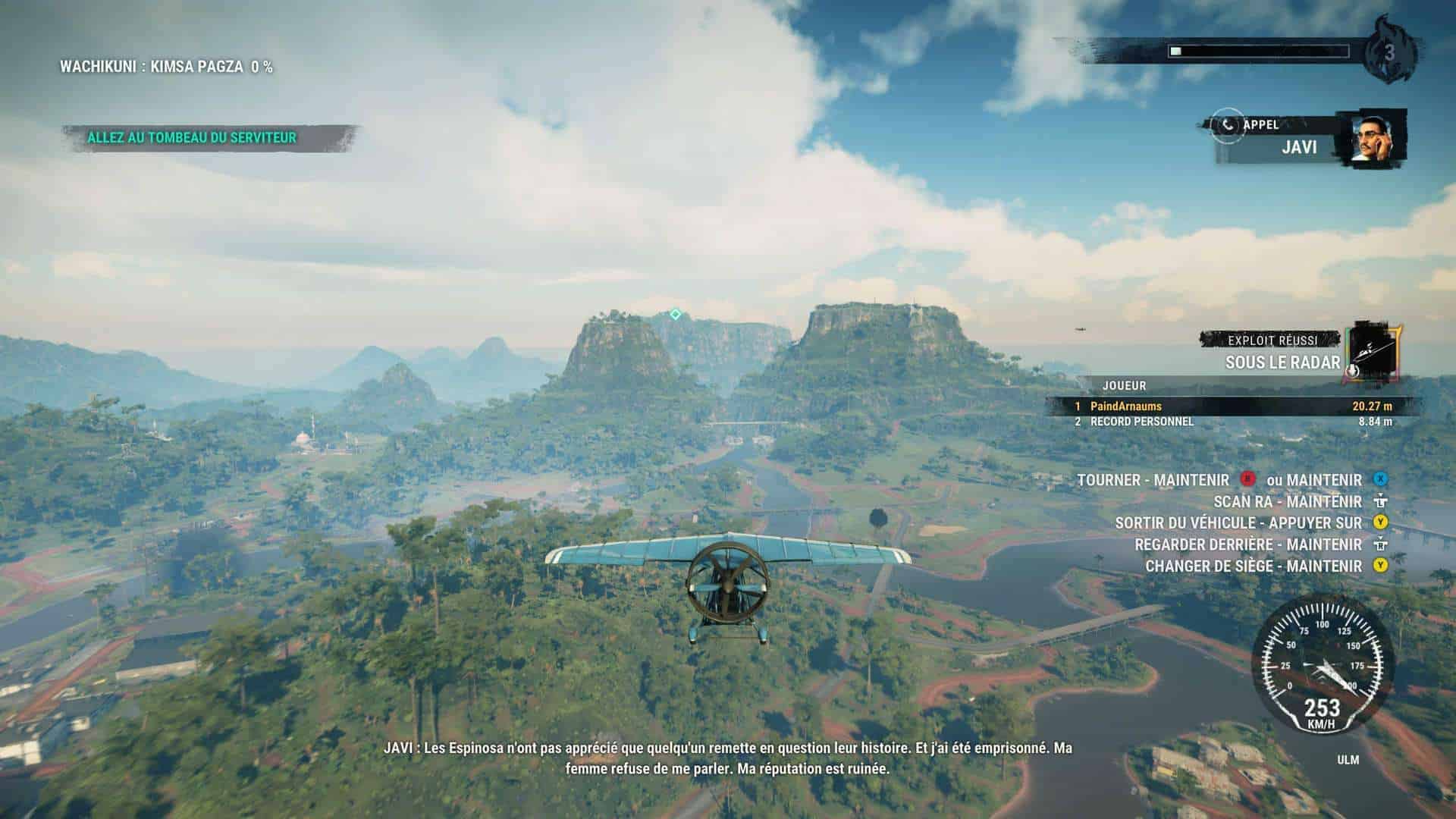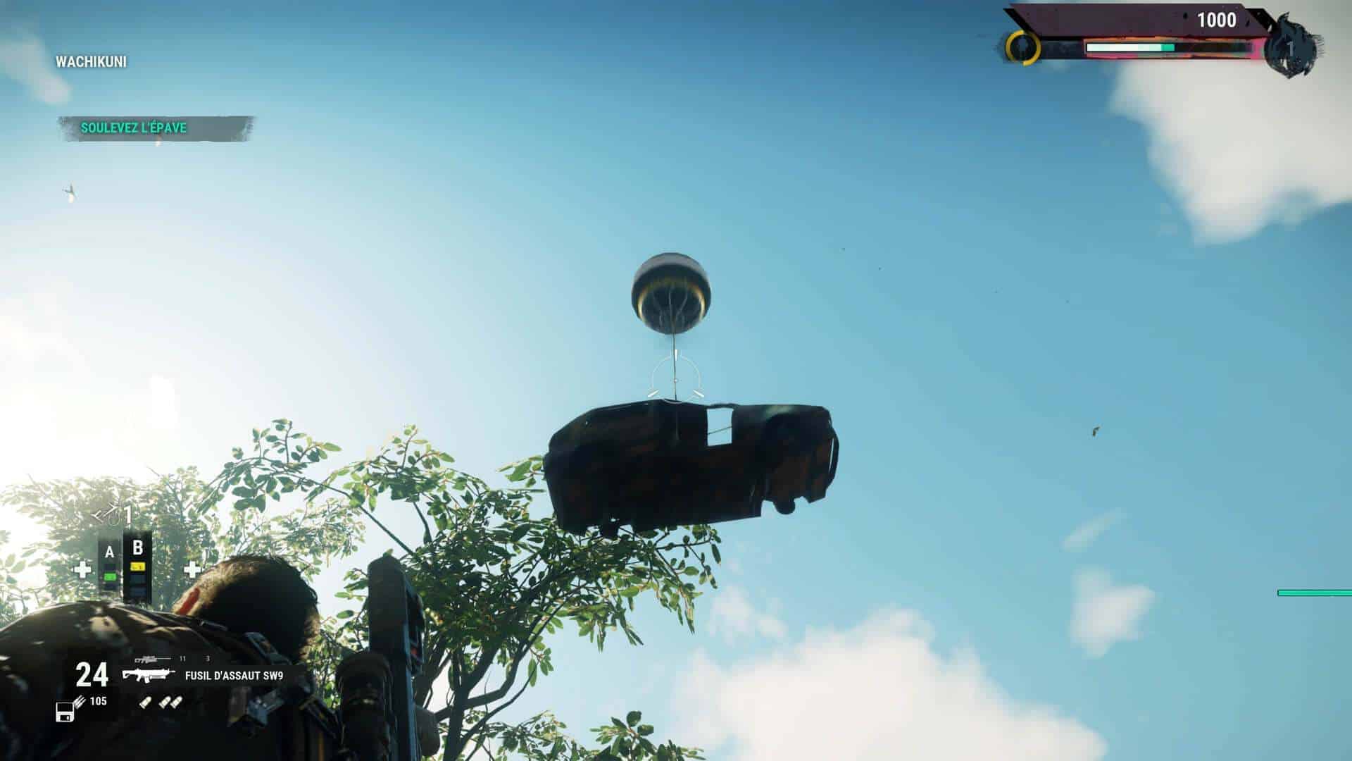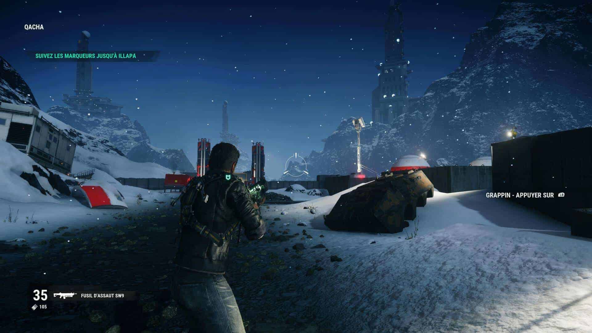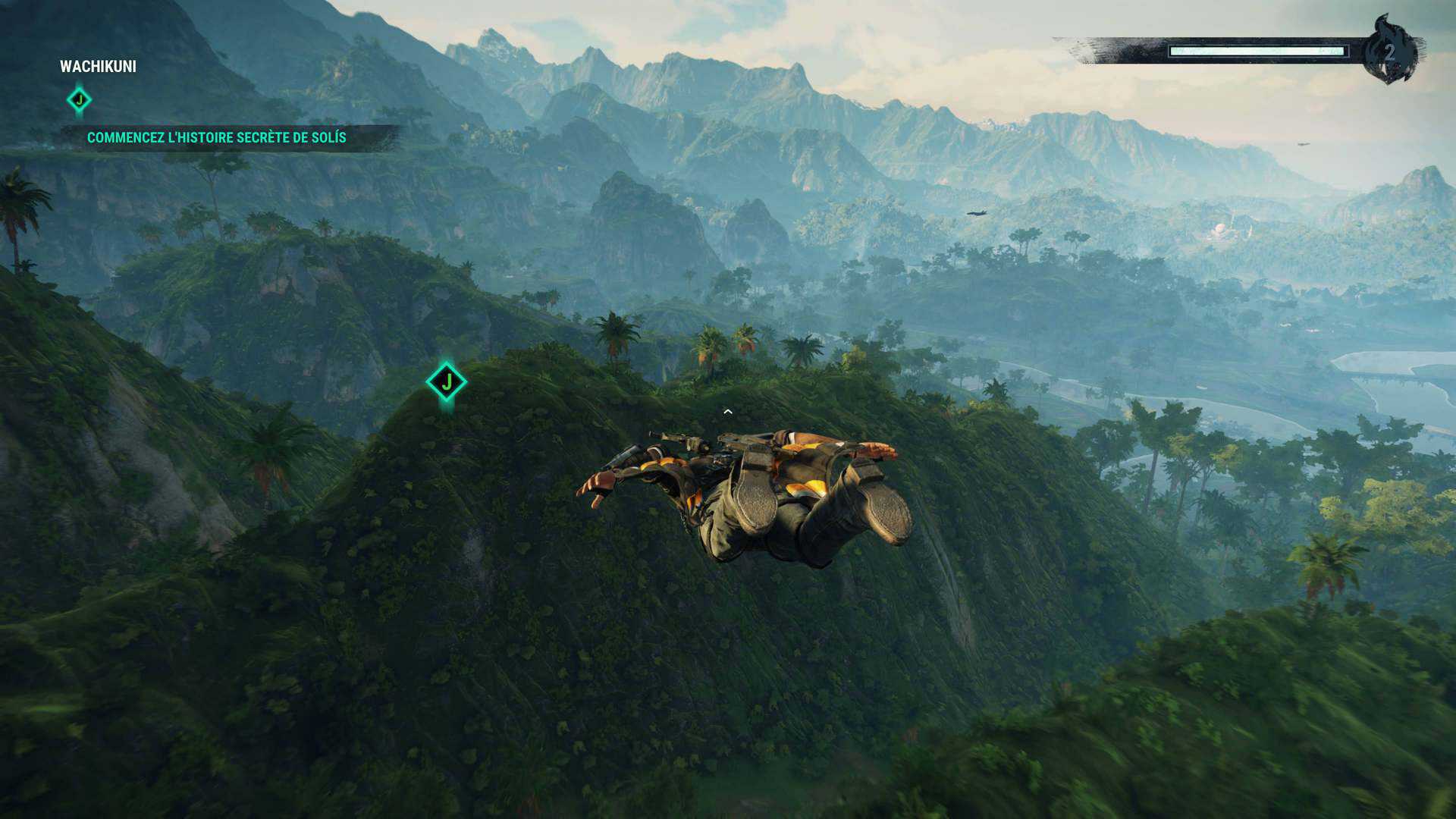 Pour vous déplacer, le combo grappin-wingsuit-parachute sera toujours votre meilleur allié afin de parcourir la map qui est juste énorme. N’hésitez cependant pas à repérer les hélicos, voitures puissantes ou encore avions de combat afin de voyager plus rapidement entre 2 points. Dans certains endroits ayant déjà été visités, il vous sera également possible d’effectuer un largage afin d’y arriver beaucoup plus rapidement. Le grappin bénéficie de certaines améliorations avec l’apparition du treuil, du ballon gonflable et des propulseurs. Intéressantes mais sous exploitées, les combats ne se prêtant pas toujours à ce genre de moyen de lutter plus lent. Petite déception également (ou alors j’ai raté un épisode) mais on note l’absence des bombes. Celles-ci étaient pourtant diablement efficaces dans l’épisode précédent.