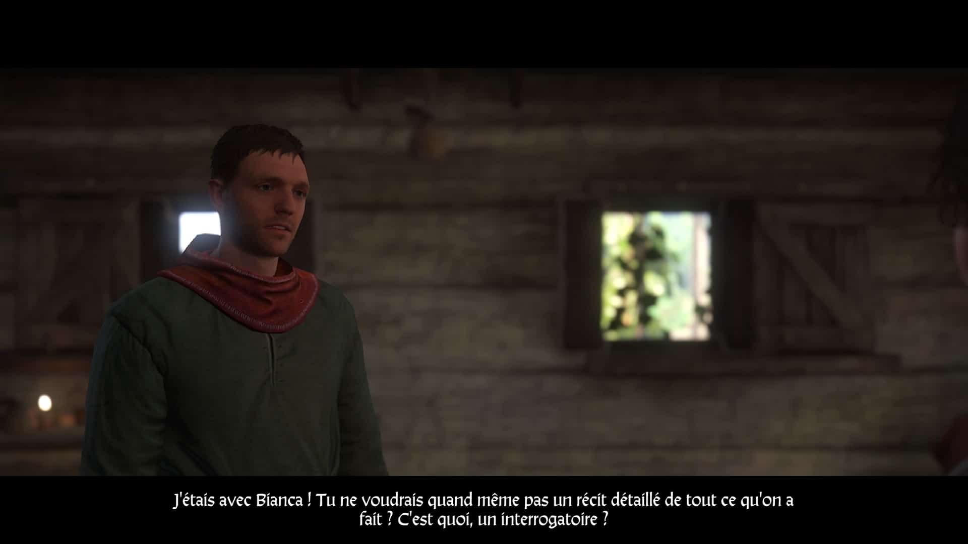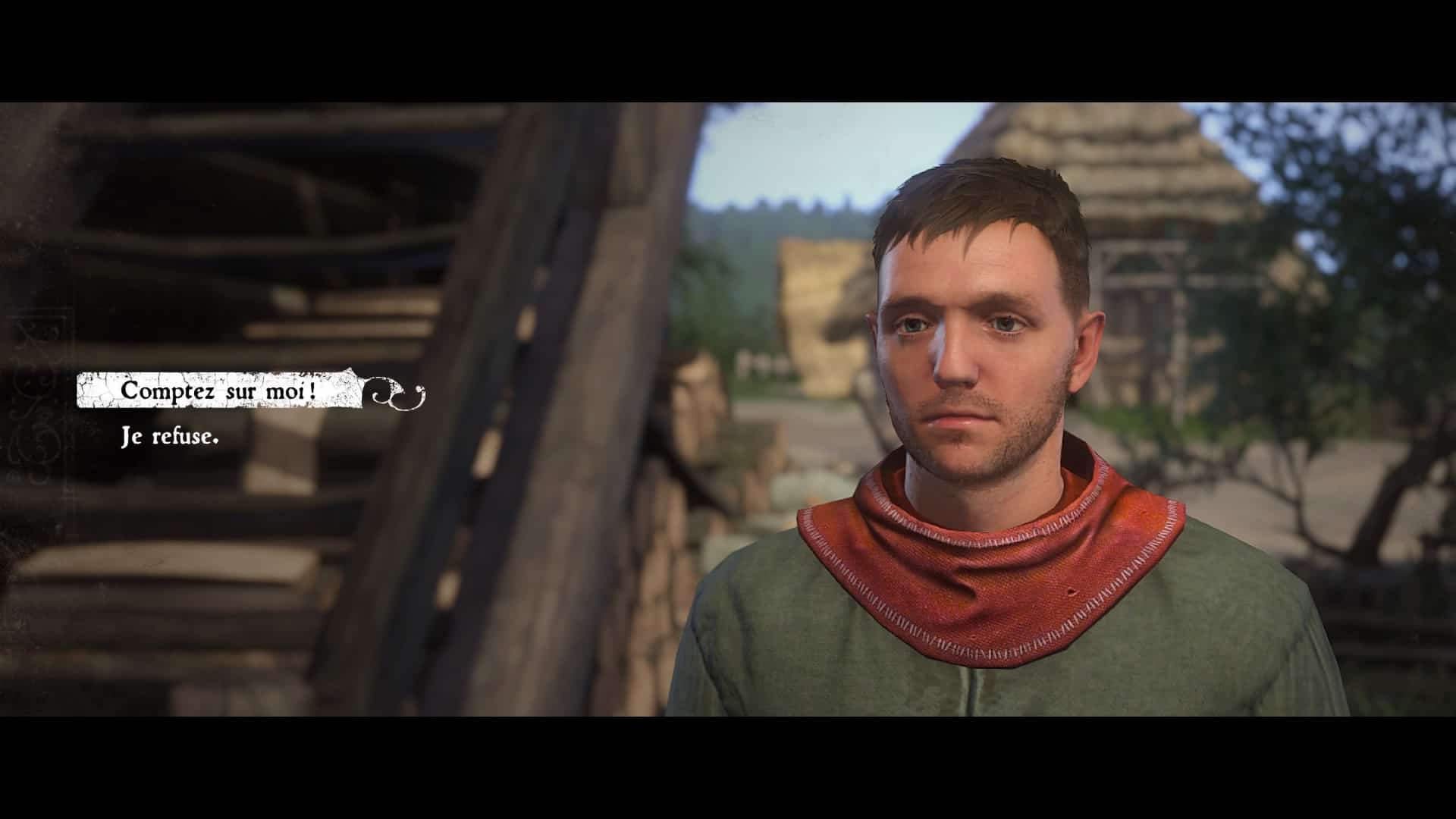 À propos d’interactions, notez que celles-ci seront extrêmement nombreuses. En cela, Kingdom Come : Deliverance accorde une grande importance aux dialogues, ce qui ne sera pas du luxe vu la difficulté des combats. Vous disposez de plusieurs approches lors des conversations pour charmer ou intimider votre interlocuteur. Ensuite, des données chiffrées s’affrontent – tout en prenant en compte les paramètres susmentionnés – et pour déterminer tore réussite ou non. Encore une fois, cette réussite ou cet échec ne sont pas anodins et ont des implications sur la perception qu’ont les gens de vous. Comprenez donc qu’en matière d’immersion et de réalisme, Kingdom Come : Deliverance fait fort et les conséquences peuvent rapidement s’avérer dangereuses, voire fatales. Donc si vous espériez déambuler n’importe où à faire n’importe quoi comme dans la majorité des RPG triple A, ne rêvez pas. Bravo encore à Warhorse pour cet excès de réalisme.