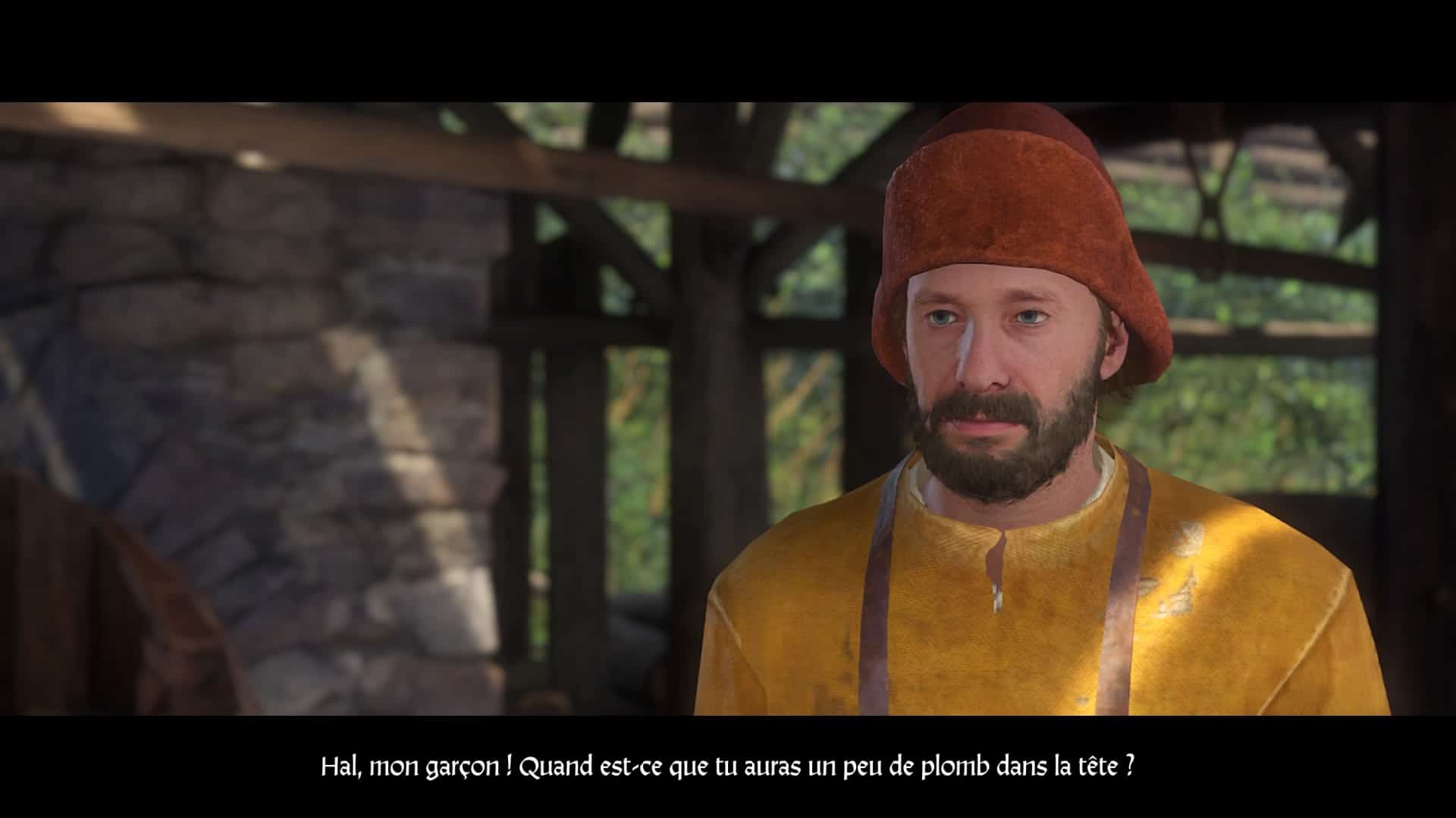 Ce soin explique probablement le retard technique du jeu et son nombre astronomique de bugs. Au lancement, il est d’ailleurs impossible de se forger un avis global sur son esthétique tant elle est irrégulière. Entre des cinématiques immersives, des expressions faciales inexistantes, des textures qui ressemblent à de la pâte à modeler périmée dès qu’on s’en approche et des paysages magnifiques quand on s’en éloigne, difficile de s’y retrouver. La direction artistique aussi y passe, entre des intérieurs ternes et d’autres somptueux, qui témoignent une nouvelle fois de la volonté de recréer un contexte authentique. Bref, Kingdom Come : Deliverance est un ascenseur visuel mais quid du son ? Irrégulier aussi. La VF est correcte mais des bugs renvoient à l’anglais (voire à l’allemand). Je recommande par ailleurs la VO, de bien meilleure qualité. Quant à la musique, elle s’avère discrète mais colle au ton, privilégiant les thèmes et sons d’ambiance.