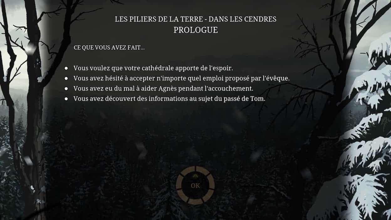 Vous débutez en tant que Tom mais vous retrouverez aussi dans la peau de Jack ou du prieur Philippe. Si vous non plus ne connaissez pas cette histoire je vous invite vraiment à la découvrir peu importe le support car au delà de son côté dramatique elle aborde des thèmes tels que les choix de vie, les amours compliqués, nos jobs qui parfois ne nous plaisent pas mais nous permettent de vivre… tout ces sujets qui sont d’actualité quelle que soit l’époque.