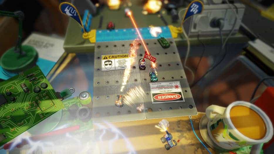 Graphiquement, le soft est hyper agréable à regarder de manière générale. On apprécie d’évoluer dans un univers miniature où tout est super bien représenté et assez diversifié : entre une planche de travail, un tapis de jeu, une cuisine mal rangée…Micromachines World Series fait le boulot. Cependant, ceci n’est pas suffisant pour nous tenir en haleine et nous donner envie d’y revenir encore et encore.