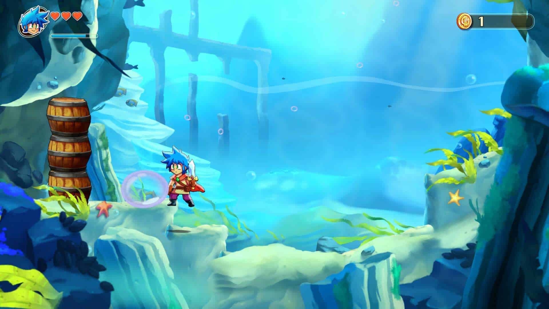 Votre objectif sera d’incarner Jin afin de tenter de retrouver les orbes cachées dans le royaume de Monster World, pour sauver ses habitants d’un sort maléfique transformant tout le monde en animaux plus bizarres les uns que les autres. Pour rappel, Monster Boy est un metroidvania ou l’on enchaîne les tableaux/plans et dans lesquels la progression se fait en mode plateformes. Énigmes et dextérité vous permettront de continuer à progresser dans votre aventure.