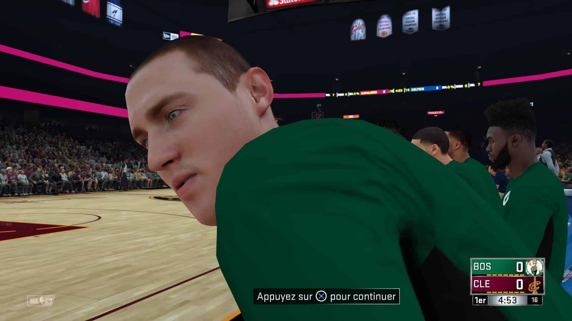 La physique du ballon semble aussi plus complexe que jamais, tandis que les modélisations faciales jouissent d’un relief très intéressant. Les couleurs de peau gagnent en nuances, même si certains visages semblent être en pâte à modeler. Suffit de voir la tête de Tyronn Lue, bouffi et grotesque. Heureusement, il s’agit plus de l’exception que de la règle, la majorité des personnages offrant un rendu plus crédible. Je pense notamment à Ernie Johnson, qui jouit enfin de traits correspondant à la réalité.