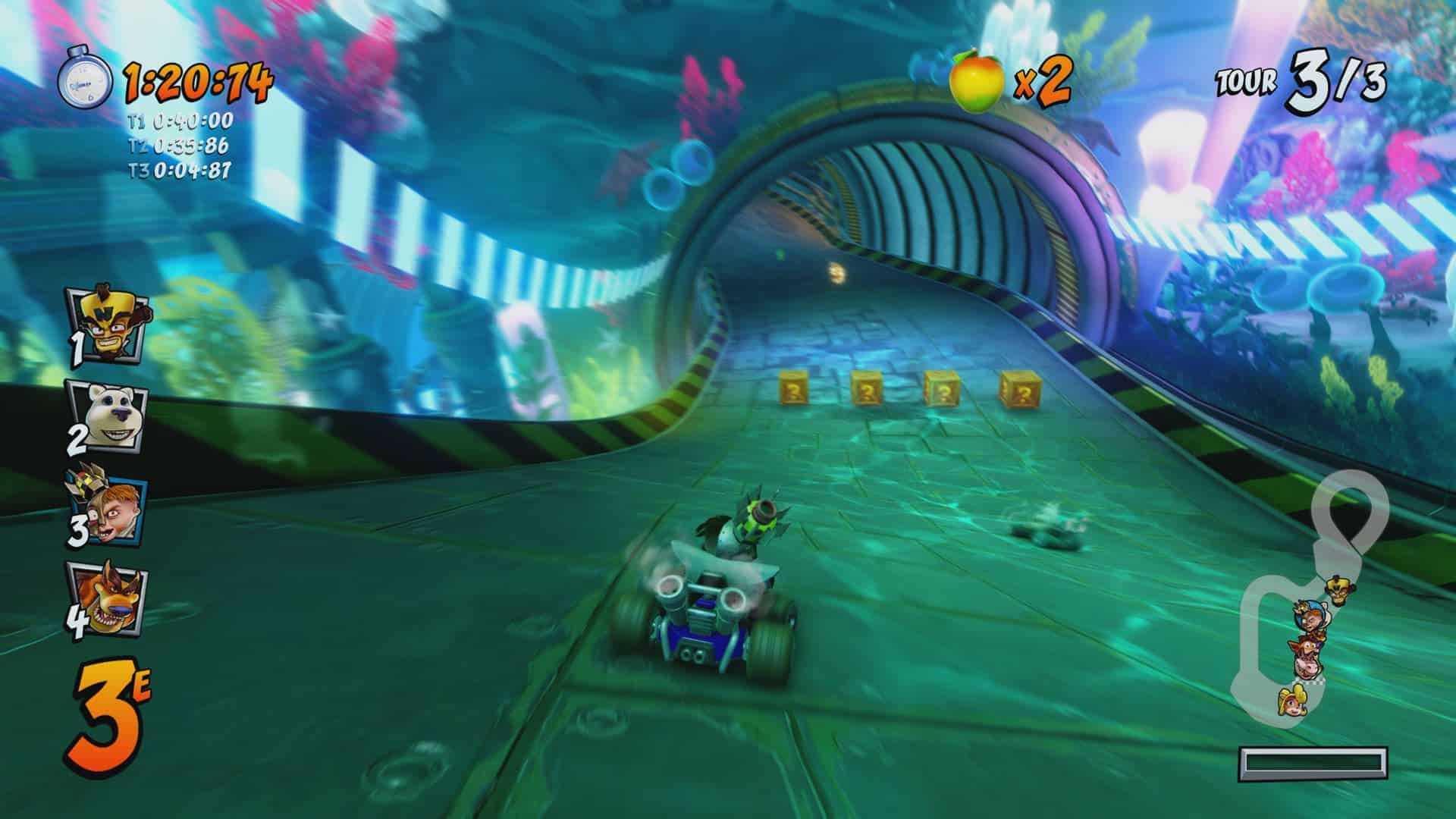 Si on ajoute à cela les différents modes comme le mode aventure, contre la montre, combat, CTR, courses de reliques et courses de cristaux sans oublier le mode online, on a donc un contenu titanesque offrant de nombreuses heures de plaisir en perspective.