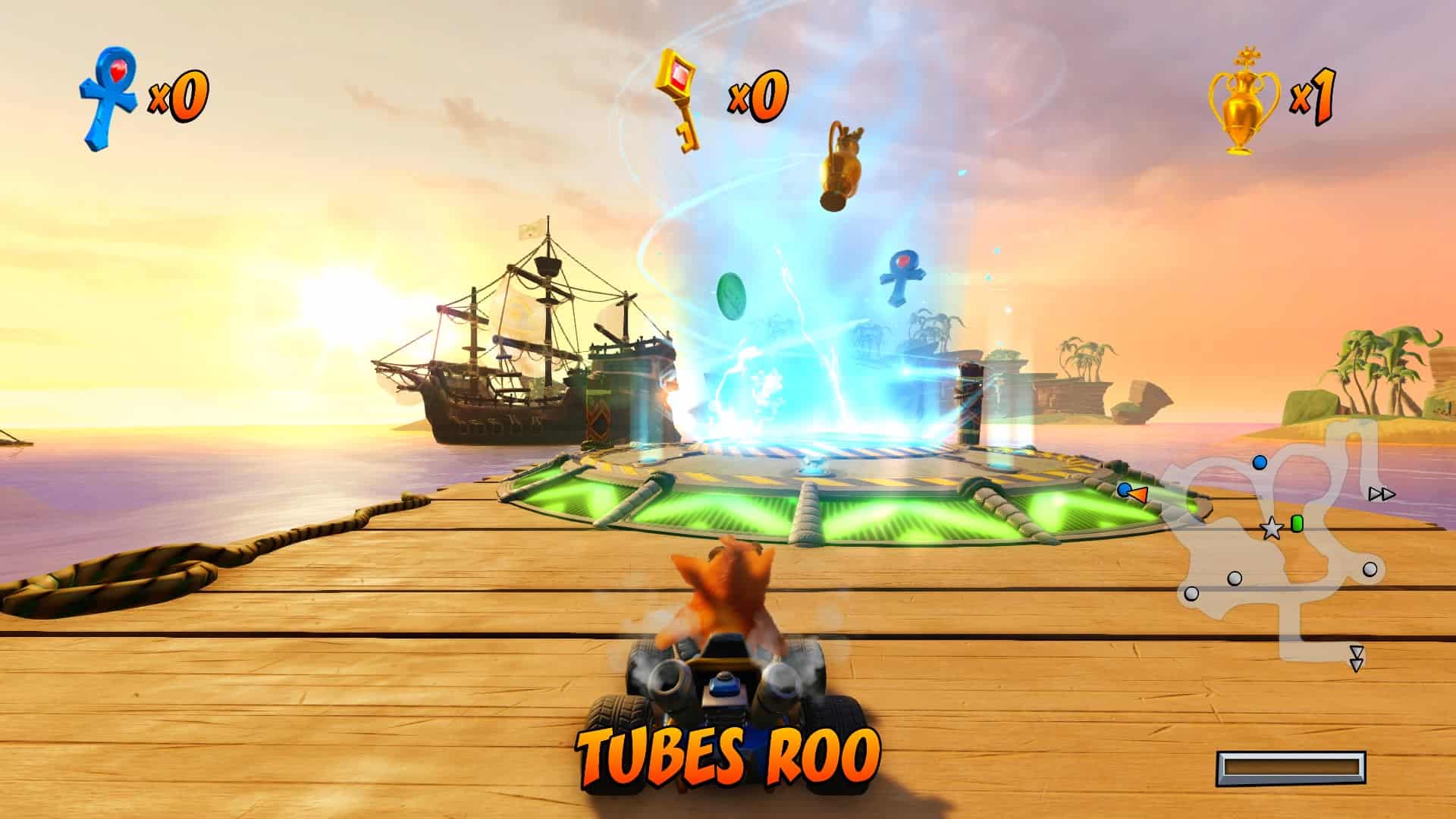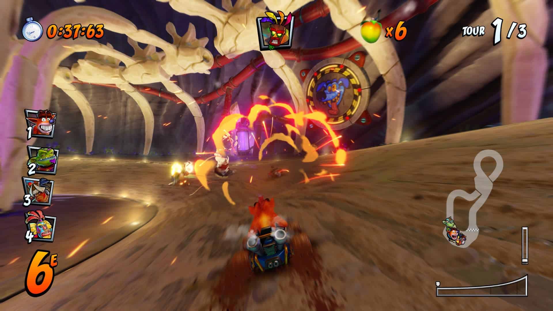 L’avantage lorsqu’on rejoue à un jeu auquel on a joué 20 ans auparavant, c’est qu’on en a un souvenir daté, surtout pour ce jeu sorti sur Playstation 1ere du nom. Même si on doit reconnaître le travail indéniable des équipes de développement afin d’adapter Crash Team Racing aux consoles dernière génération, le résultat est quelque peu décevant. Bien sur le jeu est joli, hyper coloré et vraiment bien fluide sans pour autant être net. Et lorsqu’on réalise que sur Nintendo Switch (console utilisée pour ce test), celui-ci ne tourne qu’à 30 FPS, c’est carrément décevant. Mario Kart, sorti il y a déjà quelques années tourne lui en 60 FPS. On se demande donc pourquoi Crash n’a pas pu en faire autant.