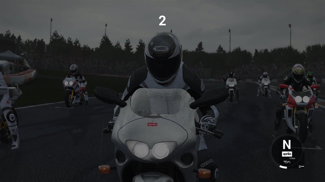 Tout cela est cependant bien beau mais qu’en est-il de la réalisation car pour une immersion totale, il n’y a pas que le contenu pour faire de Ride 2 un succès. Comme je le disais plus haut, le caractère évolutif du World Tour rend le jeu très progressif et donc accessible, surtout si vous laissez toutes les aides activées (trajectoire, freins, boite auto, IA…). Les sensations sont immédiates et on se familiarise très vite avec la conduite, surtout sur 125. Malheureusement, même lorsqu’on désactive toutes les aides au pilotage, le jeu reste encore très arcade. Il faudra presque aller coucher la moto dans l’herbe ou foncer à 150 sur un adversaire avant de chuter. Ceci n’est pas grave pour autant mais pour ceux qui s’attendent à une vraie simulation, je vous conseille de tester avant d’acheter. Pour ma part, cela ne me dérange pas car je joue avant tout pour prendre du plaisir et je ne pense pas que j’en prendrais autant si le jeu était nettement plus punitif.
