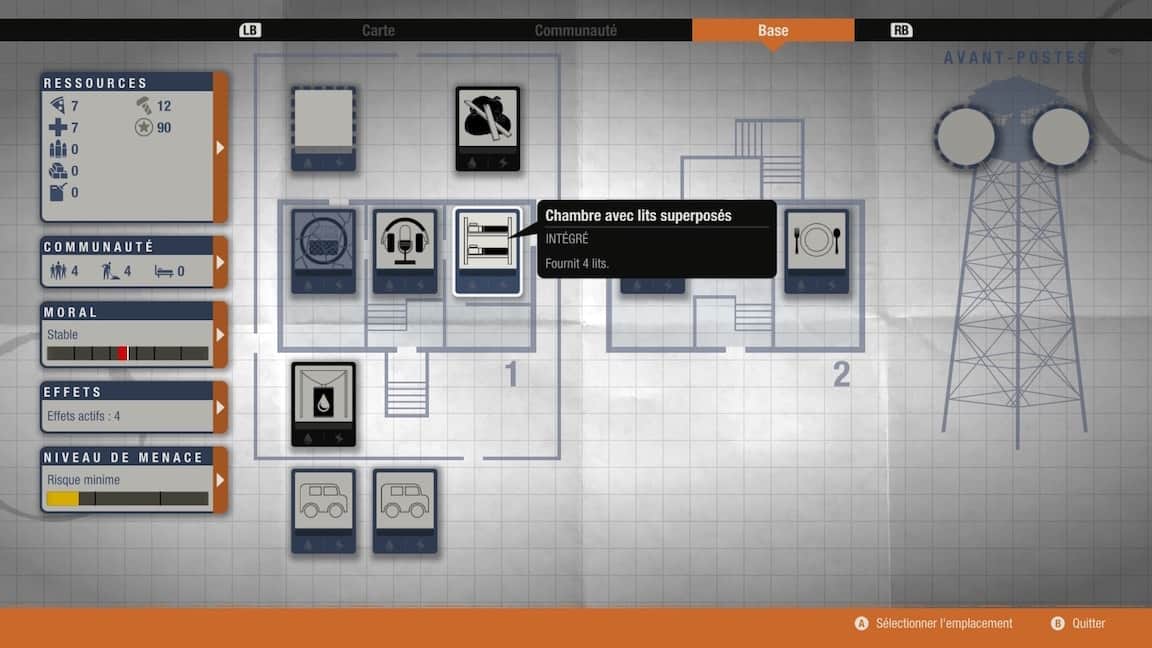 À la manière d’un 7 days to die vous allez devoir vous trouver une base et ensuite sortir récolter les vivres, les armes et autres denrées utiles à votre survie. Plus haut je mettais le mot “histoire” entre parenthèse car il est clair que celle-ci n’est pas le point fort de State of Decay 2. Ce n’est qu’un fil rouge permettant d’avoir diverses missions à réaliser. Ne vous attendez donc pas à un début et une fin à la Résident Evil ou Dead Rising. Malgré tout elle a le mérite d’exister et reste cohérente, bien que déjà vue avec l’univers des zombies.