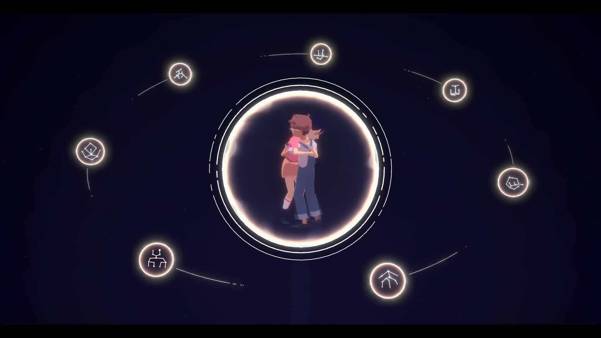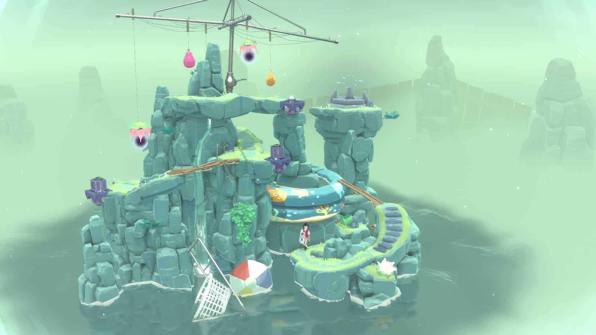 Je ne peux évidemment pas vous parler de l’histoire du jeu, bel et bien présente malgré le format. Pas de mise en scène ici, pas de cinématiques et pas le moindre doublage. Et pourtant, The Gardens Between raconte une histoire touchante, authentique et bien plus évocatrice que de nombreux triple A truffés de ces éléments. Chaque fois que les protagonistes déposent leur orbe au sommet d’une île apparaît une toile évoquant les obstacles de l’île, nous en apprenant subtilement plus sur les personnages. Cette ambiance de rêve transcende d’ailleurs les niveaux et tout dans le jeu – absolument tout, de l’écran titre à la cinématique de fin – contribue à son histoire qui touchera l’enfant en vous.