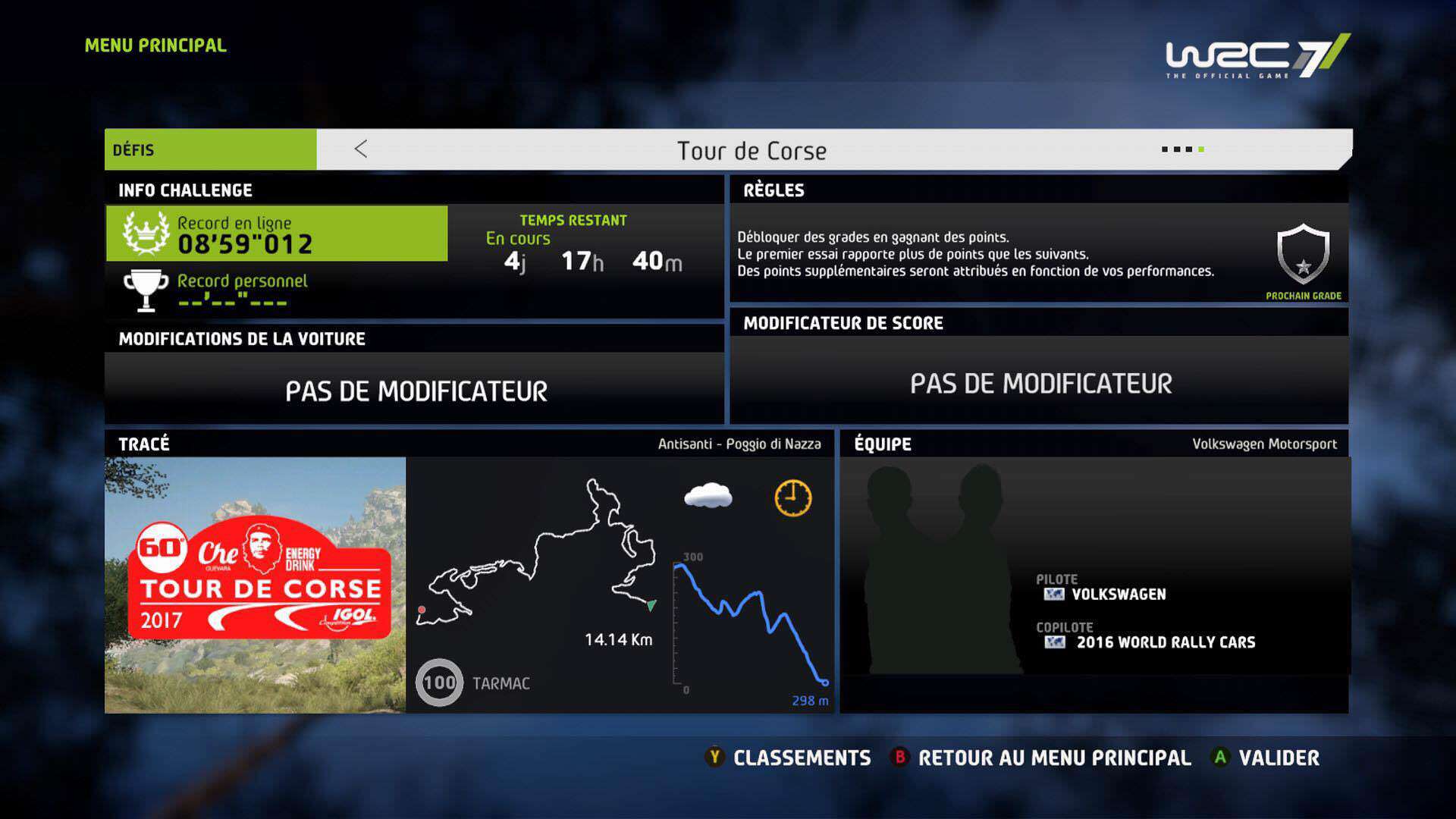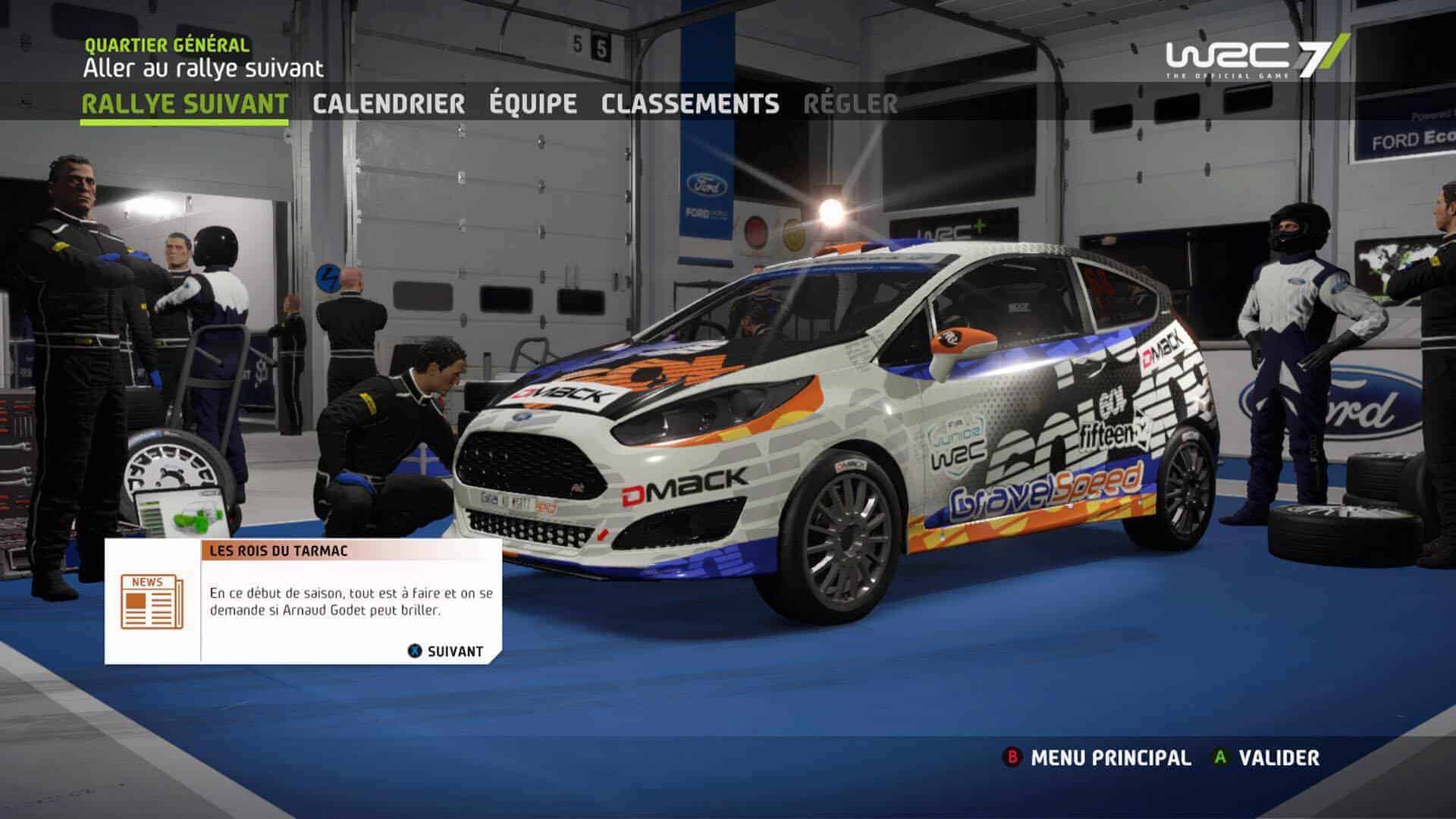 Abordons le contenu tout d’abord. Pas de grande surprise de ce côté-là, WRC 7 disposant de la licence officielle du WRC, vous disposerez des équipes et des rallyes de la saison 2017 encore en cours. Du côté des modes de jeu, on retrouve les classiques modes carrière, championnat, rallye personnalisé, course rapide, multijoueur et championship. Assez complet bien que le tout reste assez classique et sobre. Ceci est superbement illustré par le mode carrière qui n’apporte rien de nouveau et qui, bien qu’étant un passage obligatoire, ne restera pas dans les annales. Pas mal d’heures en perspective quand même, surtout grâce à des sensations de conduite et un côté simulation bien meilleurs, mais ça j’y reviendrai. Sur ce, on embarque dans la voiture de notre Thierry Neuville national et on met la gomme.