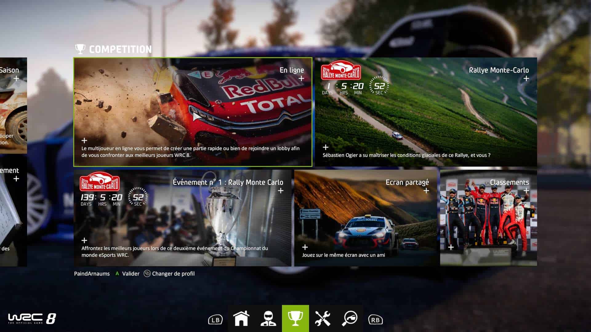 Il y a 2 choses qui peuvent vous tenir en haleine dans un jeu de voitures selon moi, le mode en ligne pour affronter d’autres joueurs ou réaliser des challenges ou alors le mode carrière. Sachant que je joue très peu en ligne, si le mode carrière n’est pas réussi, j’ai tendance à ne pas forcément revenir sur certains jeux. Bien sûr, WRC 8 offre un mode en ligne avec classements afin de savoir si vous êtes parmi les meilleurs. Mais il offre aussi des challenges, répartis dans le temps, et que vous pourrez ou non relever afin d’améliorer votre réputation en ligne.