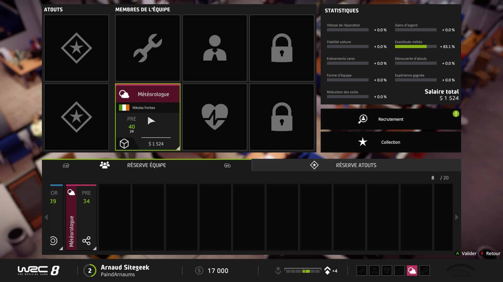 Enfin, garder l’équilibre de votre calendrier sera primordial afin de participer aux épreuves constructeur quand c’est nécessaire ou alors de reposer votre équipe pour qu’ils soient fit pour le prochain rallye. Une chose est certaine, la progression se fait pas à pas et on a sans cesse envie d’y retourner pour continuer à progresser vers les sommets.
