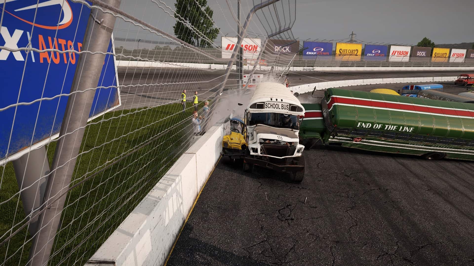 Reste alors le gameplay. Là pour le coup chapeau à Bugbear qui est arrivé à avoir le parfait équilibre entre une voiture qui semble peser deux tonnes (ce qui est parfois le cas) et un ensemble qui est quand même dynamique. L’IA de Wreckfest est peut-être un poil trop résistante aux chocs mais le contraire aurait été plus embêtant donc j’accepte cela avec plaisir.