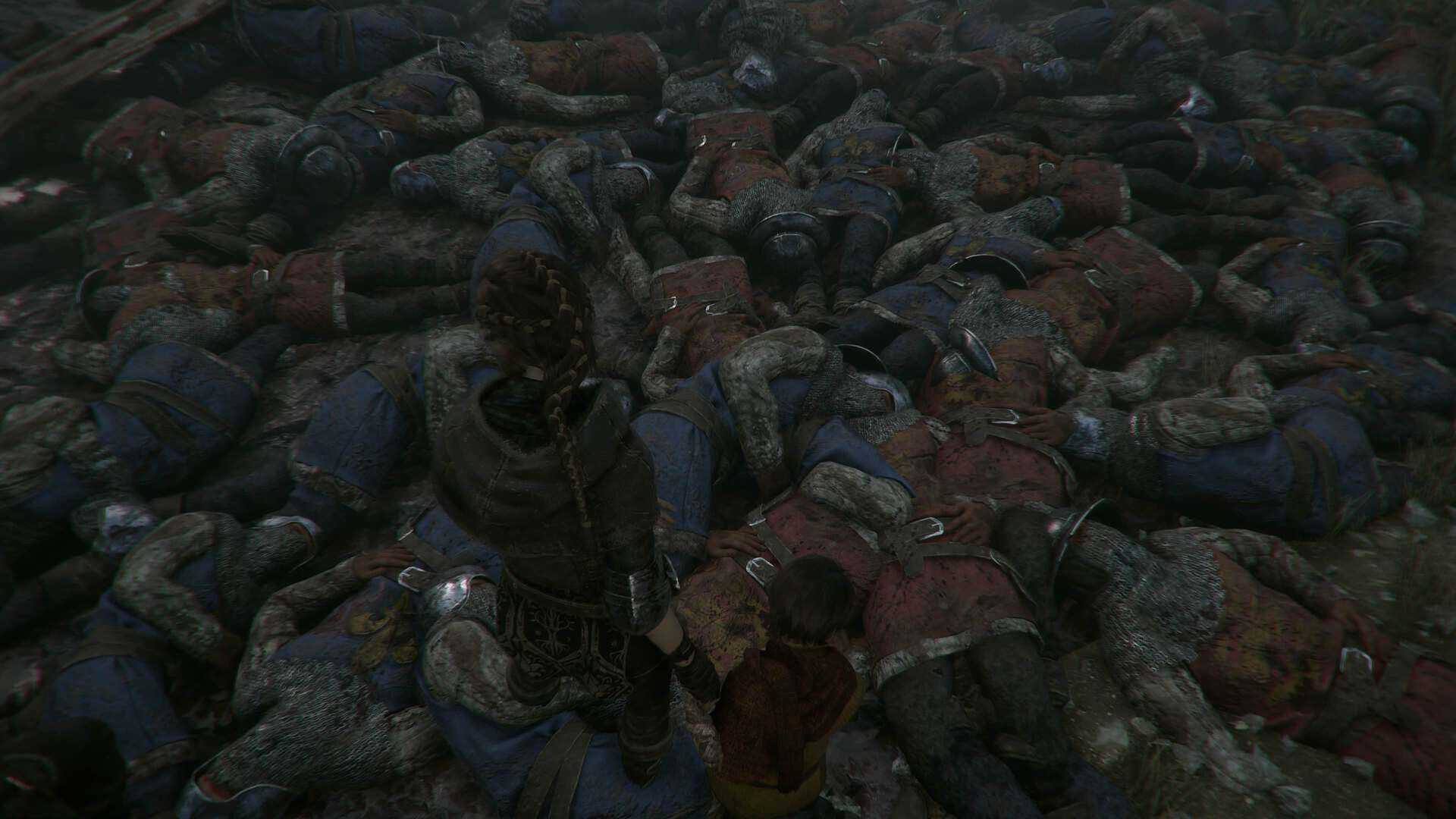 Comme beaucoup de jeux du genre, A Plague Tale se distingue par sa direction artistique irréprochable. Comme je vous le disais, la France du Moyen-Age est ici parfaitement retranscrite dans sa nature mais aussi ses châteaux et villages vraiment bien détaillés. Que dire alors de la tension créée par la présence toujours plus nombreuse des rats, animaux morts et autres corps en décomposition. Cela fait froid dans le dos mais augmente grandement l’immersion. Les graphismes sont malheureusement un peu en dessous de la qualité des cinématiques, manquants parfois de profondeur ou nous donnant un certain effet de flou. Pas bien grave mais empêchant le jeu de se hisser vers les plus hauts sommets du genre.