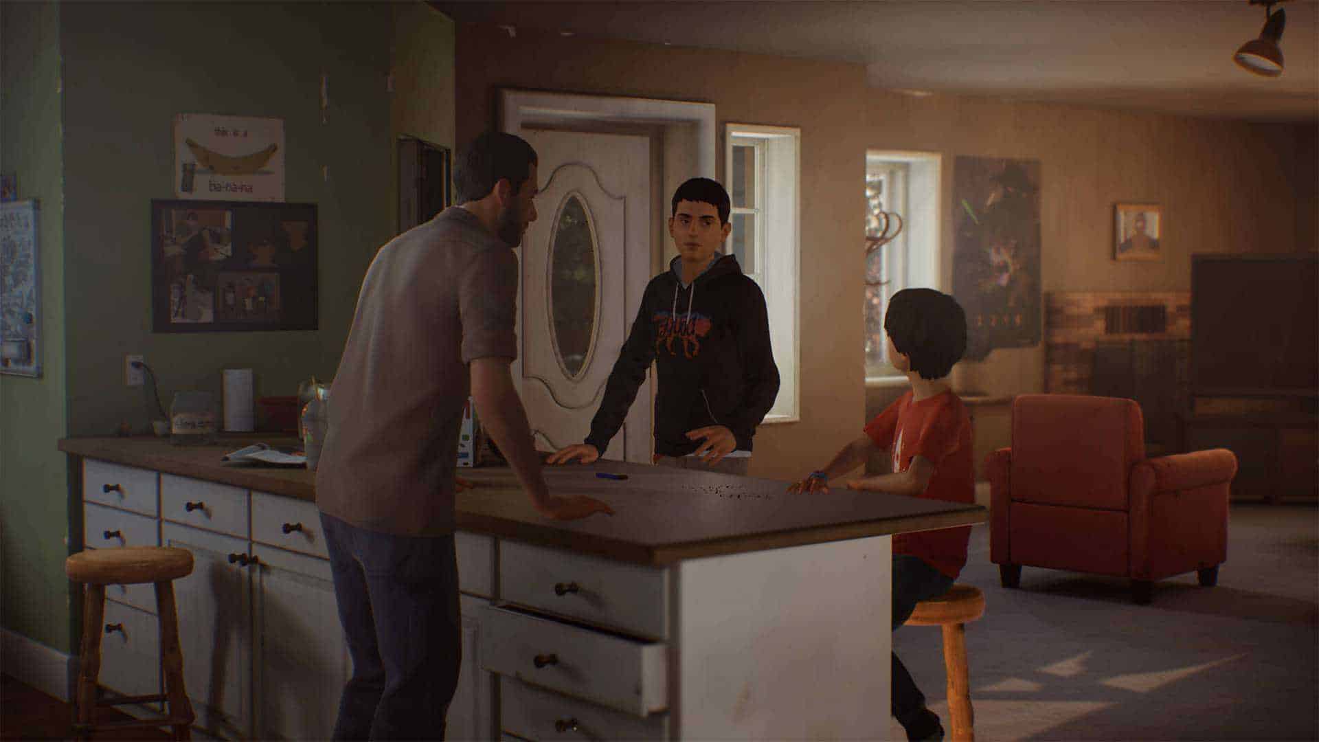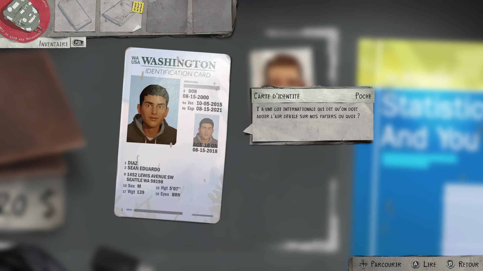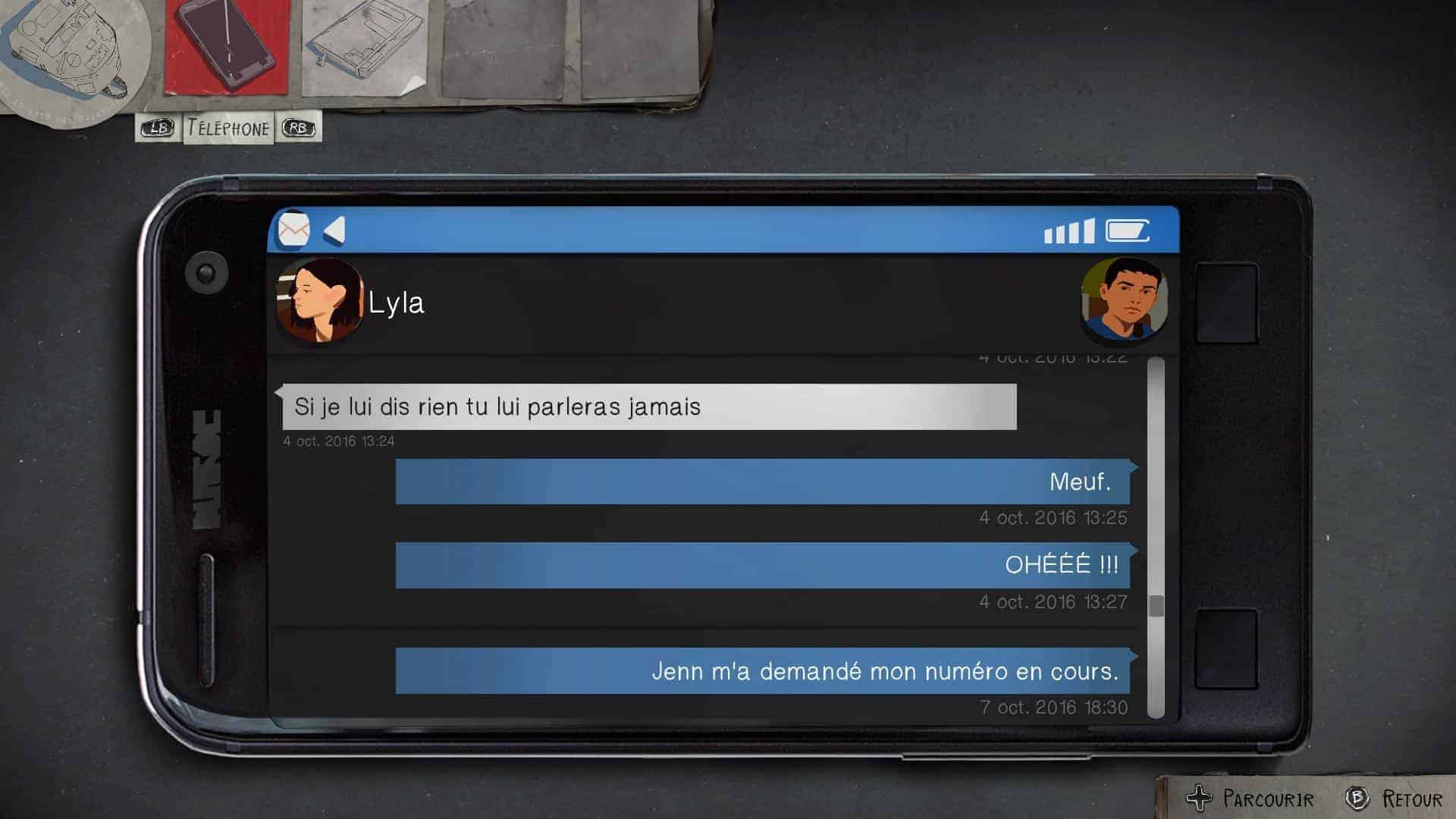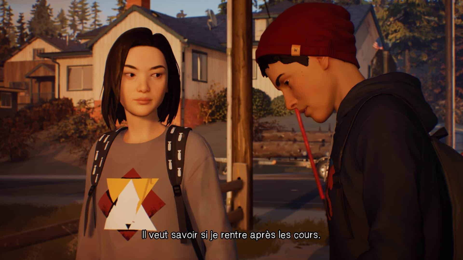 Les dynamiques du jeu quant à elles restent les mêmes que dans les premiers épisodes. Life is Strange 2 est avant tout la pour nous raconter une histoire et l’on passera donc pas mal de temps à discuter ou observer des cinématiques. Vous aurez cependant des choix à faire lors de ces discussions. Le reste du temps, on explore les endroits où on est, on regarde chaque objet, chaque recoin, à la recherche de quelque chose qui peut illuminer notre lanterne ou nous aider à avancer dans l’aventure. Ce côté immersion dans le réel est encore augmenté par la présence de votre journal de bord, votre cahier de dessins et votre smartphone. Le tout se remplissant au fur et à mesure de votre progression et de vos décisions.