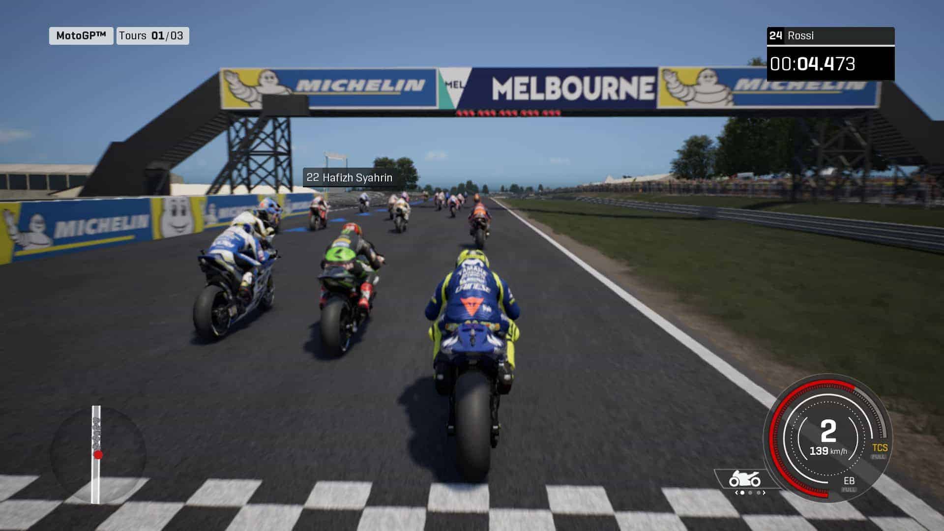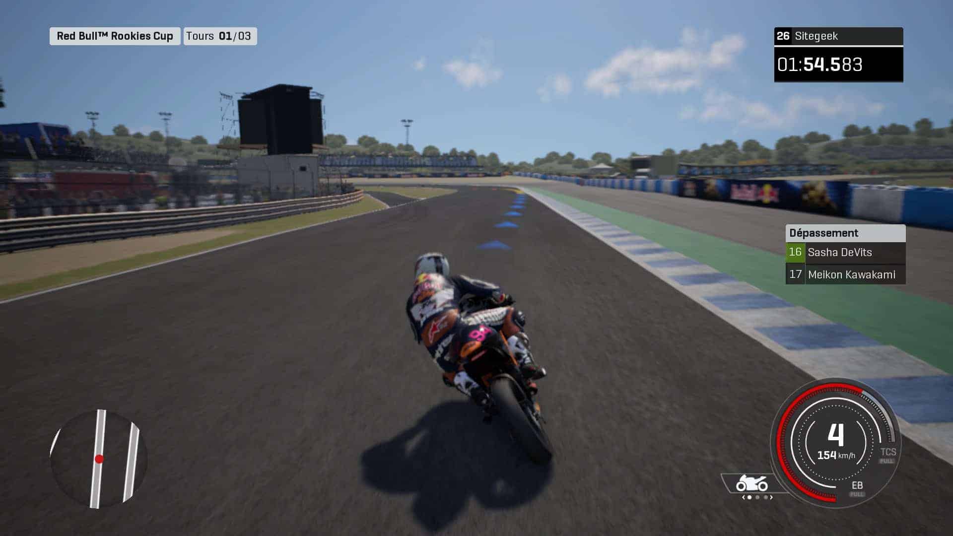 Une fois vos choix faits, chacun de ceux-ci se ressentira dans votre pilotage. Celui-ci est extrêmement précis et pour peu que vous augmentiez un peu le niveau de l’IA, le challenge sera vraiment au rendez-vous. On ressent carrément les effets de sur/sous-virage ainsi que le transfert des masses, chose assez rare sur un jeu de moto car pas forcément évidente à reproduire. Un vrai bon point donc.