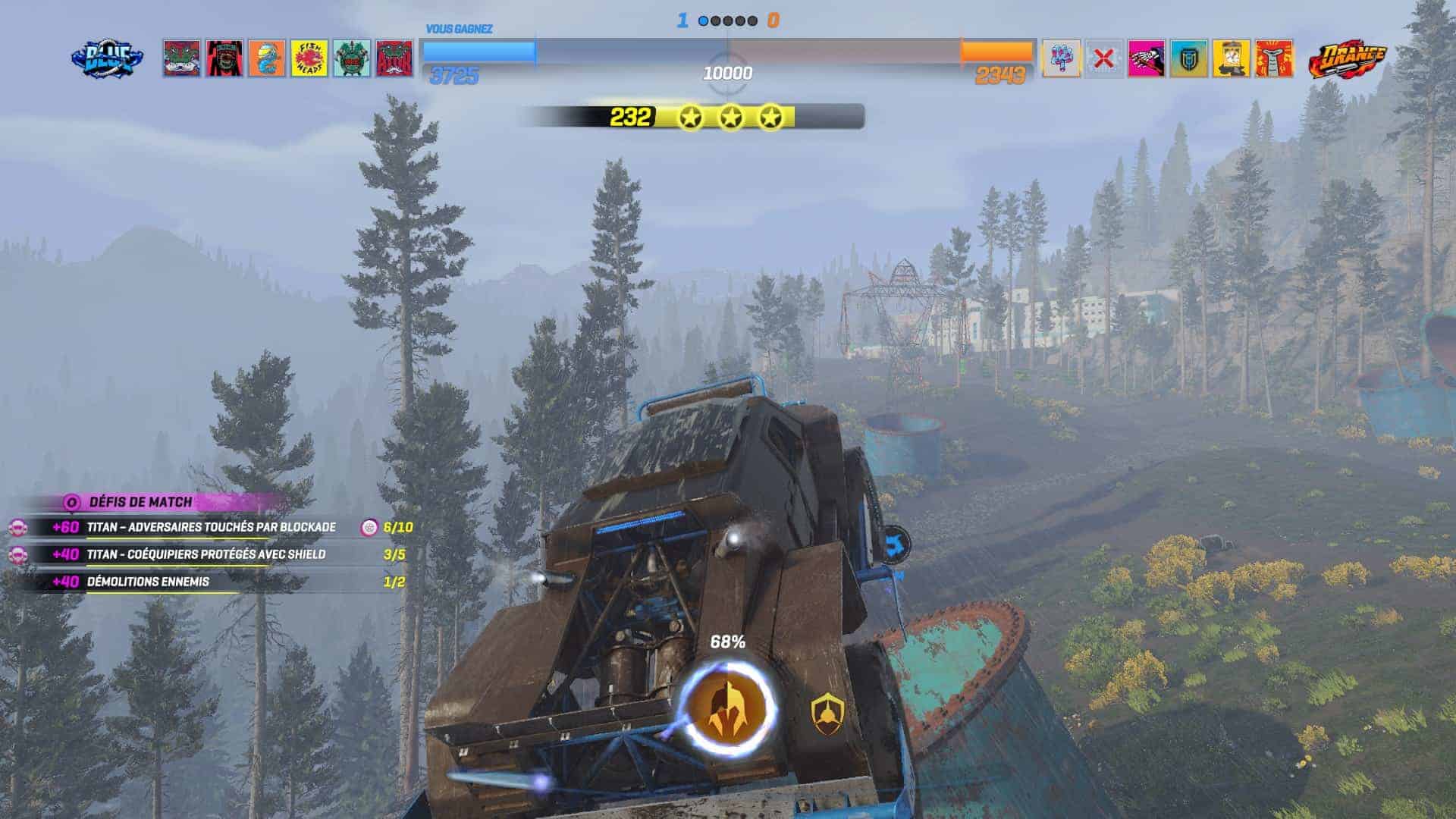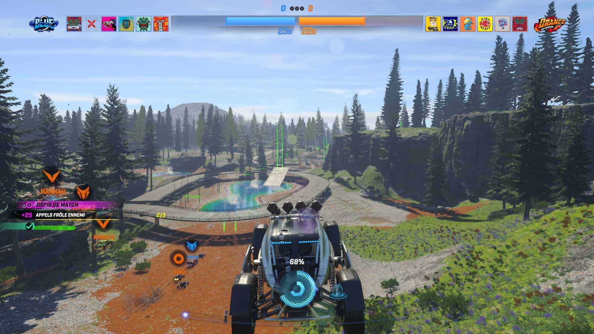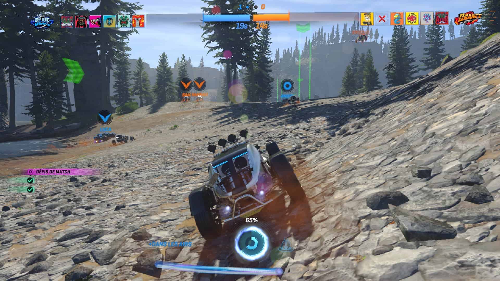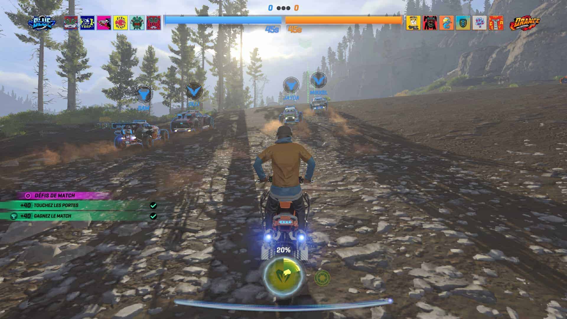 Si vous ignorez tout de Onrush, le concept est simple. Le but n’est pas de finir la course en premier ou du moins pas seulement. En fonction de la course, vous devrez réaliser certains objectifs, dont je parlerai plus loin, afin de remplir votre jauge de boost et par conséquent, pouvoir activer le mode Rush afin d’aller toujours plus vite. Le but final étant de remporter plus de manches que l’équipe adverse.