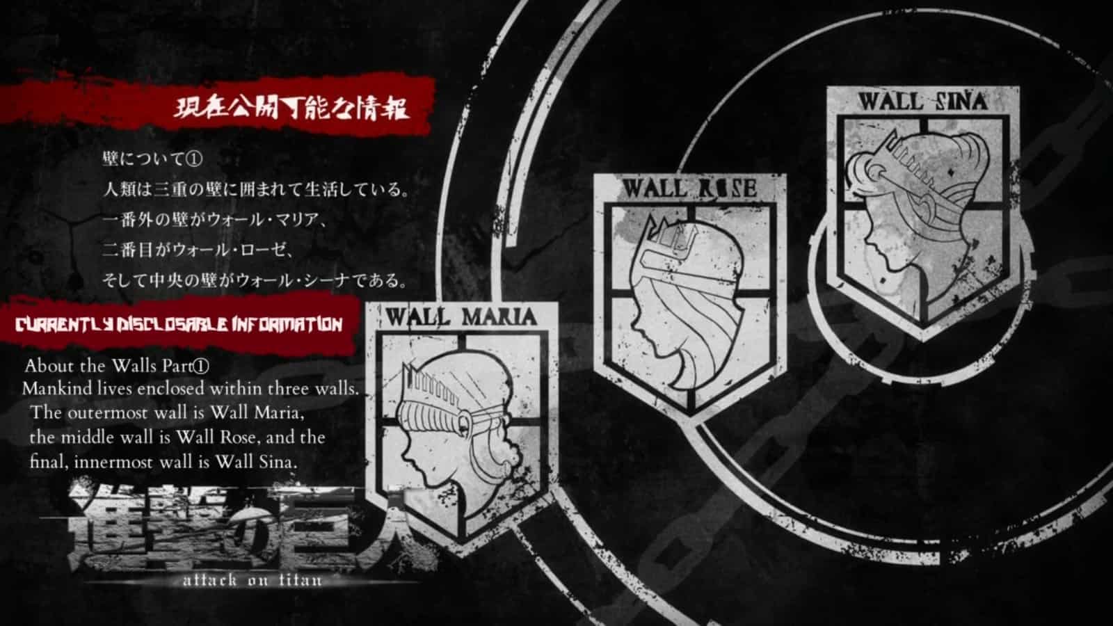 “Il y a 100 ans de cela des Titans sont apparus sur terre. Géants mesurant entre 5 et 15 mètres, pour ce qu’on en sait, ces monstres n’ont qu’un seul but : nous dévorer. Ils ont pu décimer une bonne partie de l’humanité. Mais des survivants ont pu se réfugier derrière trois murailles gigantesques – Maria, Rose et Sina. La tranquillité est revenue durant près de 100 ans au point que certains nés au sein même des murs n’ont jamais vu de Titans. Mais cela est sur le point de changer !”