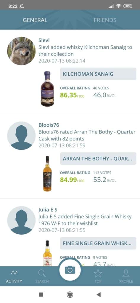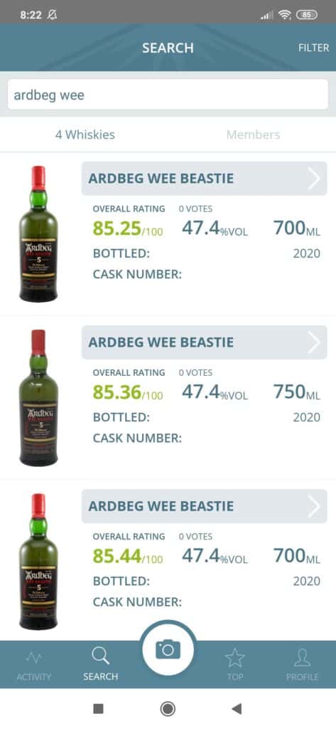 Au niveau de la recherche, on effectuera un choix parmi plus de 150.000 whiskies répertoriés, 1500 distilleries, 6500 marques. Bref, un bien bel inventaire qui grandit un peu plus chaque jour. Cette recherche peut également être effectuée en prenant une photo de votre bouteille. Un peu à la façon de Vivino dont je vous avais déjà parlé à l’époque.