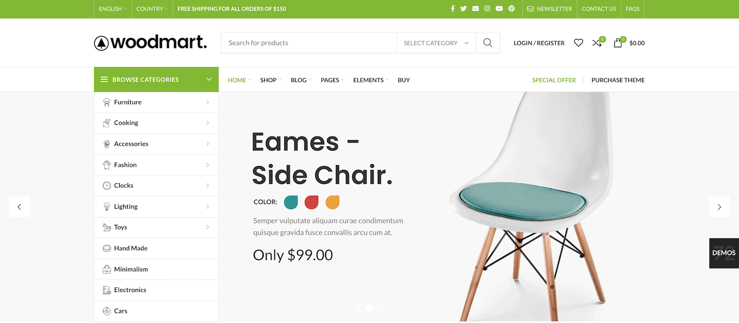 WoodMart, le dernier thème WordPress-WooCommerce de ce classement, est aussi un thème en vente sur ThemeForest.net. Tout comme BeTheme, WoodMart vient tout juste d’être mis à jour. Décidément, la compétition est féroce dans le monde des thèmes WordPress pour e-commerce !