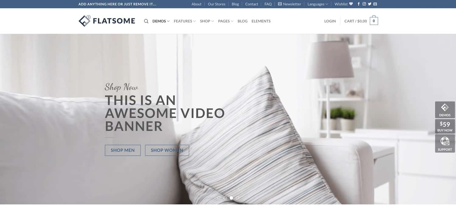 Flatsome est un thème WordPress qui est bien sûr également compatible avec WooCommerce et disponible sur la place de marché d’Envato, ThemeForest.net. Ce thème a été conçu par l’équipe UX-themes. Comme le nom de leur team l’indique, ils se sont principalement concentrés sur l’expérience utilisateur (UX) de leur thème. Ils vous promettent un thème qui s’adapte à toutes les boutiques en ligne, peu importe la thématique, et qui sera entièrement responsive.