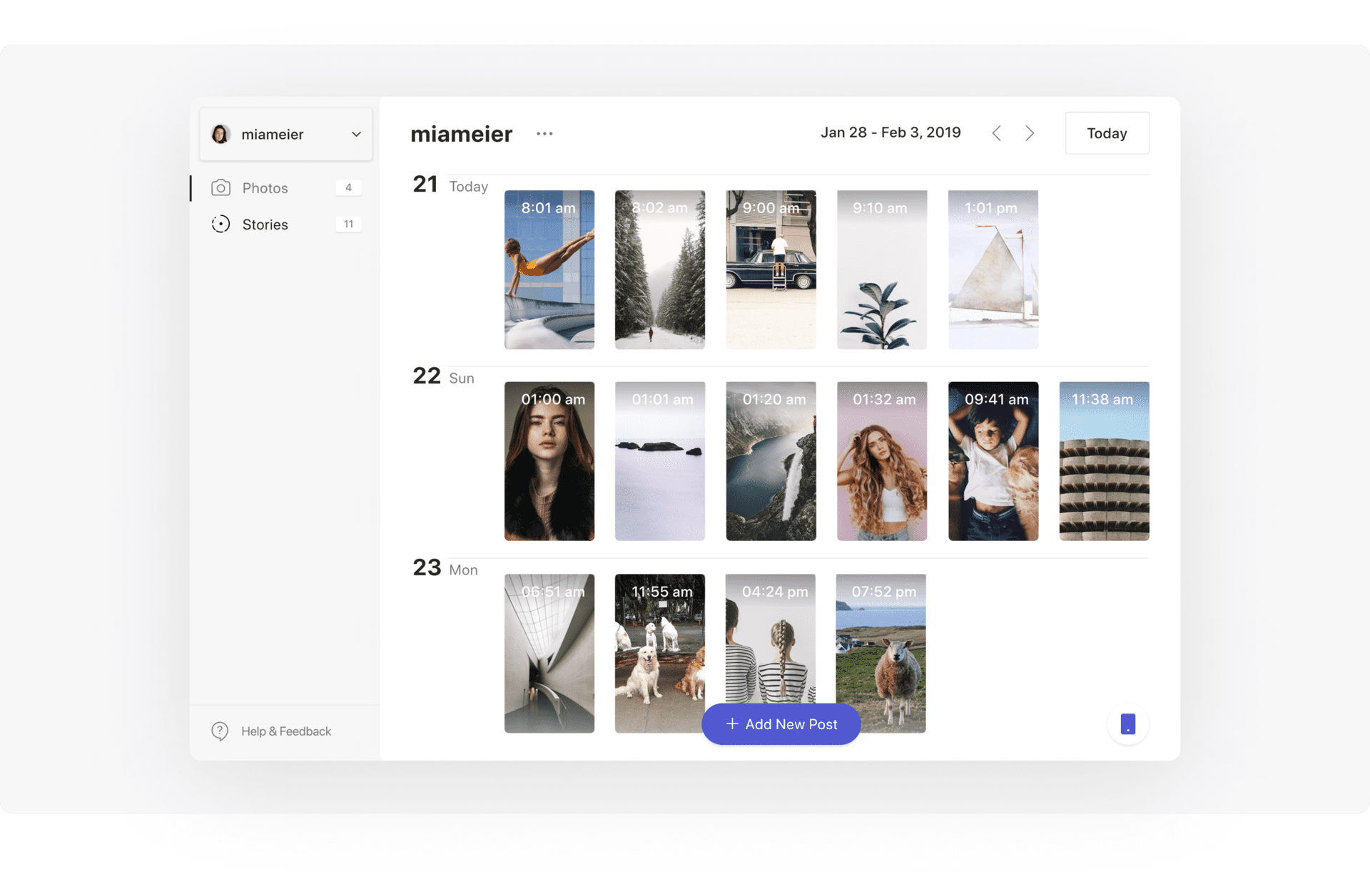 - Connectez-vous de manière sécurisée sur votre compte Instagram via le Scheduler. Une fois connecté, vous vous retrouverez automatiquement sur la page de programmation des posts. Cliquez sur Ajouter une nouvelle publication en bas de la fenêtre du logiciel pour commencer à planifier un post.