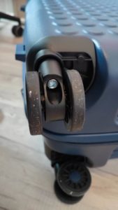 Ainsi, le premier point fort des valises Dot-Drops est d’être réparables à l’infini ou presque. En effet, si quelque chose casse sur votre valise, vous pourrez facilement commander une pièce de rechange et la réparer vous-mêmes vu que l’ensemble est assemblé avec la même visserie et hyper simple d’accès, qu’il s’agisse d’une roue ou d’une poignée.
