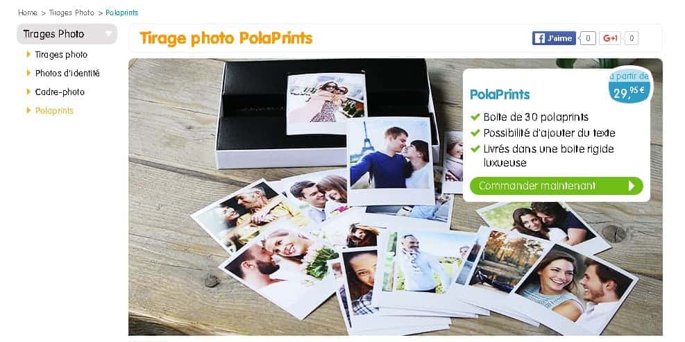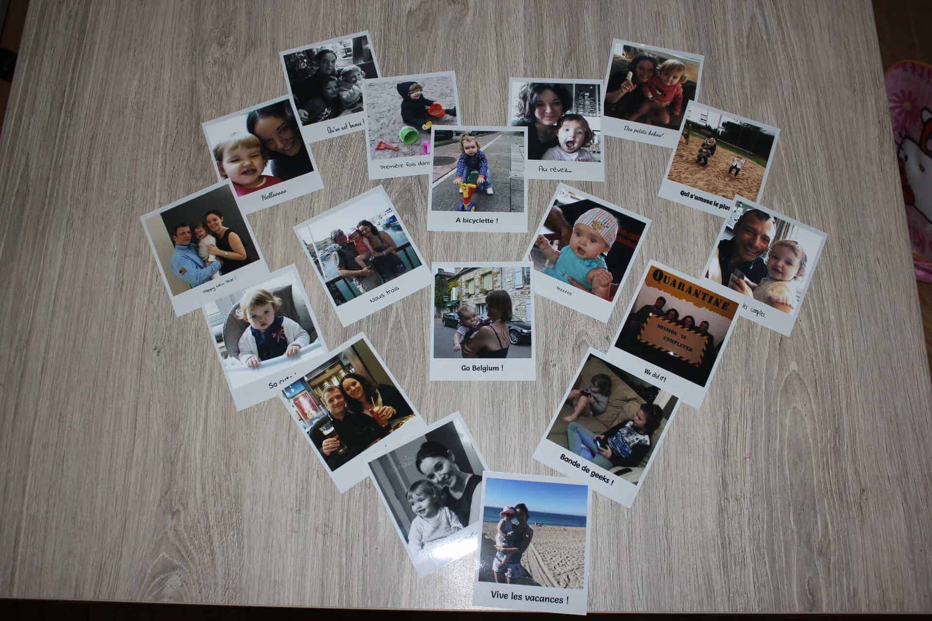 Venons-en aux polaprints maintenant. C’est un retour en enfance que de pouvoir imprimer ses meilleurs souvenirs sur polaroids de bonne qualité. Comme je vous le disais, vous trouverez un menu explicatif très clair sur comment réaliser vos polaprints, mais également une section «inspirations » si vous manquez d’idées sur quoi faire ou comment utiliser vos polaroids à la maison. Ce que je trouve génial, c’est la possibilité de prendre n’importe quelle photo, de la recentrer dans le polaroid, de choisir vos options photo et ensuite de pouvoir ajouter du texte en dessous, dans un cadre aux couleurs et à la forme de votre choix. Vous en surprendrez plus d’un avec ce produit. Toutefois, il vous reste à espérer ne pas devoir recommencer toutes vos manipulations à cause d’un plantage de l’outil, qui ne sauvegarde pas au fur et à mesure. Cela a été le cas pour nous, et c’est hautement frustrant ! Nul doute que certaines personnes quitteront purement et simplement le site pour la concurrence si cela leur arrive.